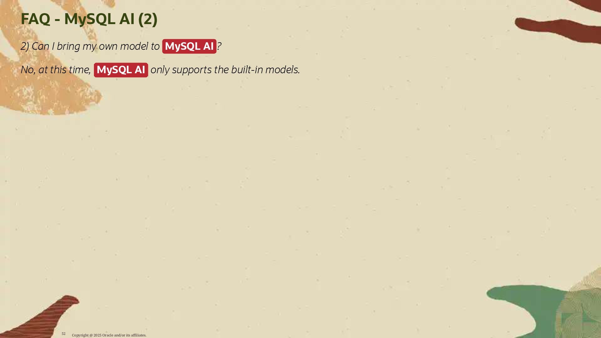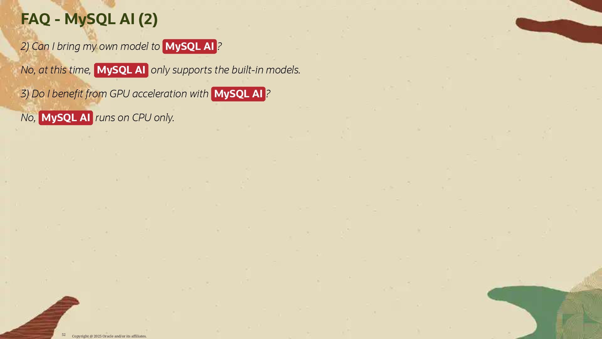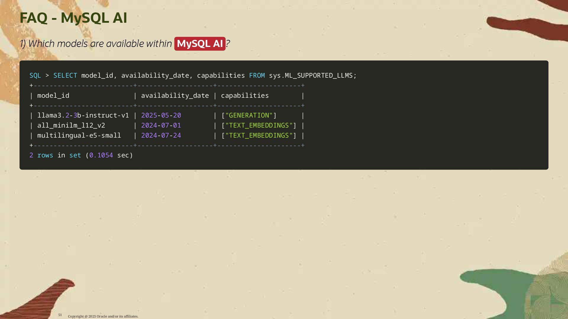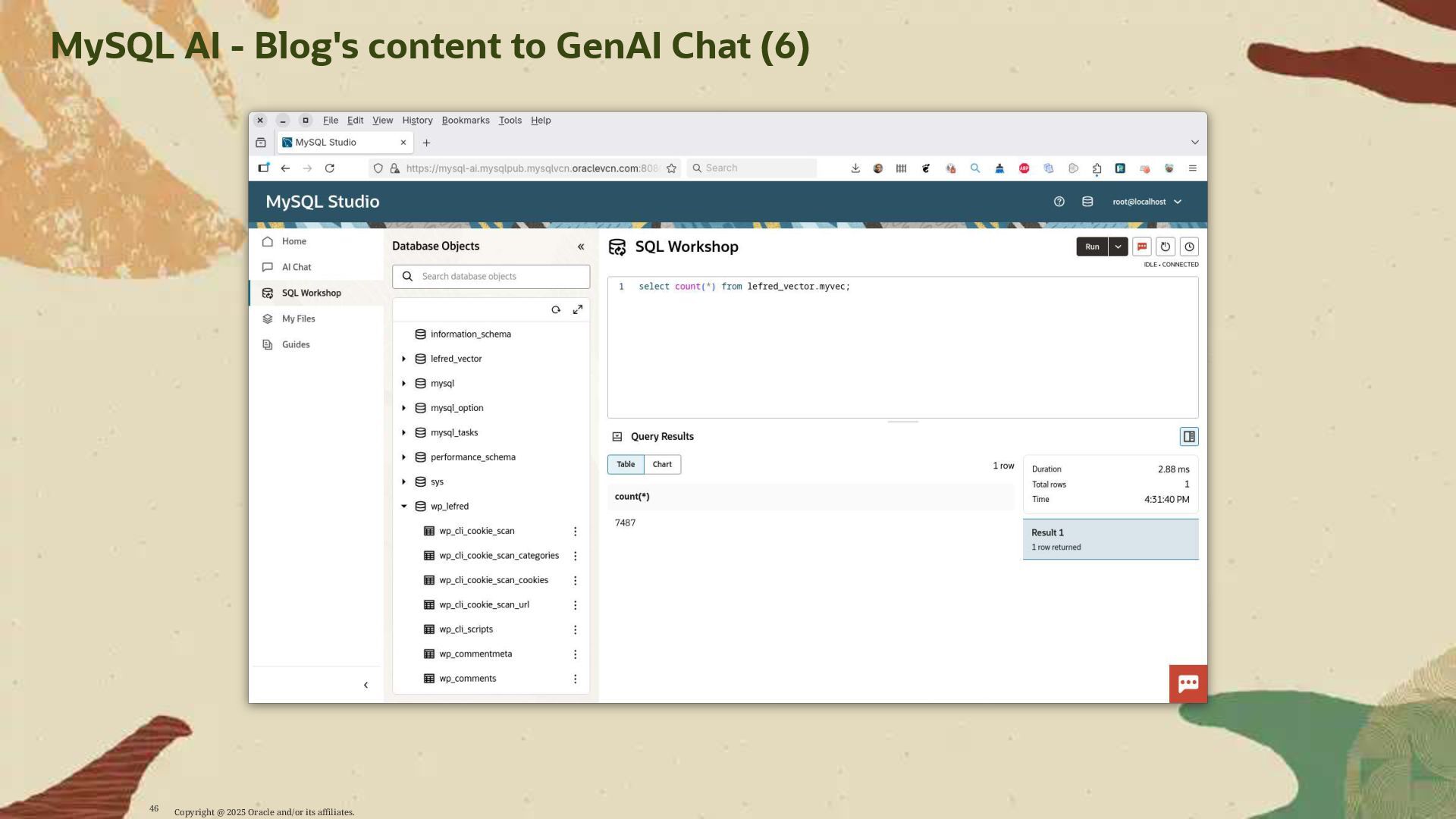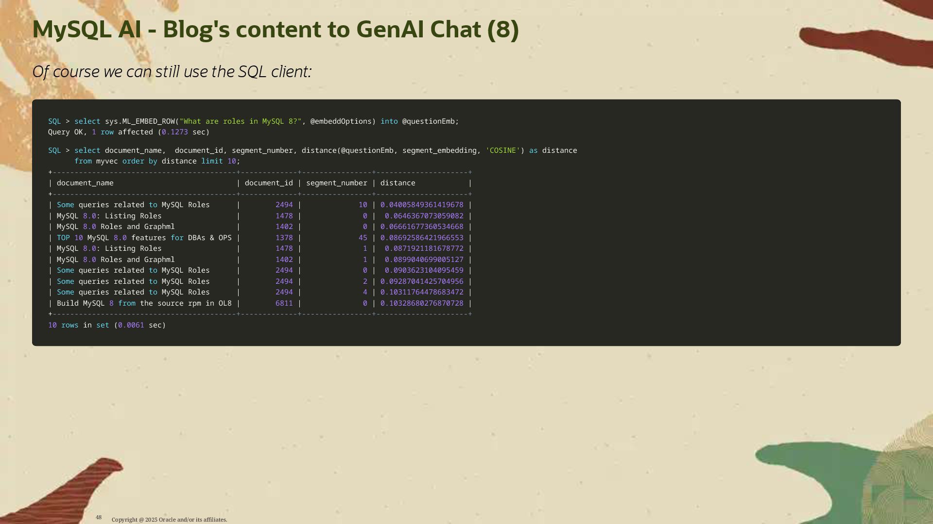 - Deploy AI-driven features — such as semantic search and contextual data enrichment — natively inside MySQL