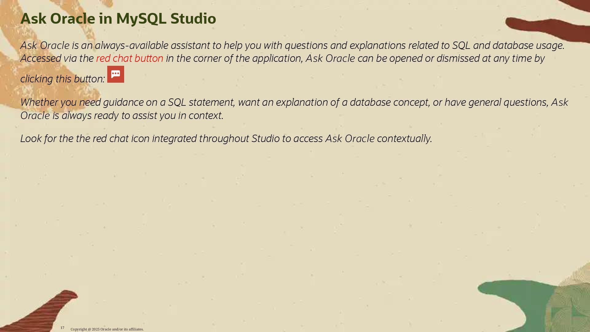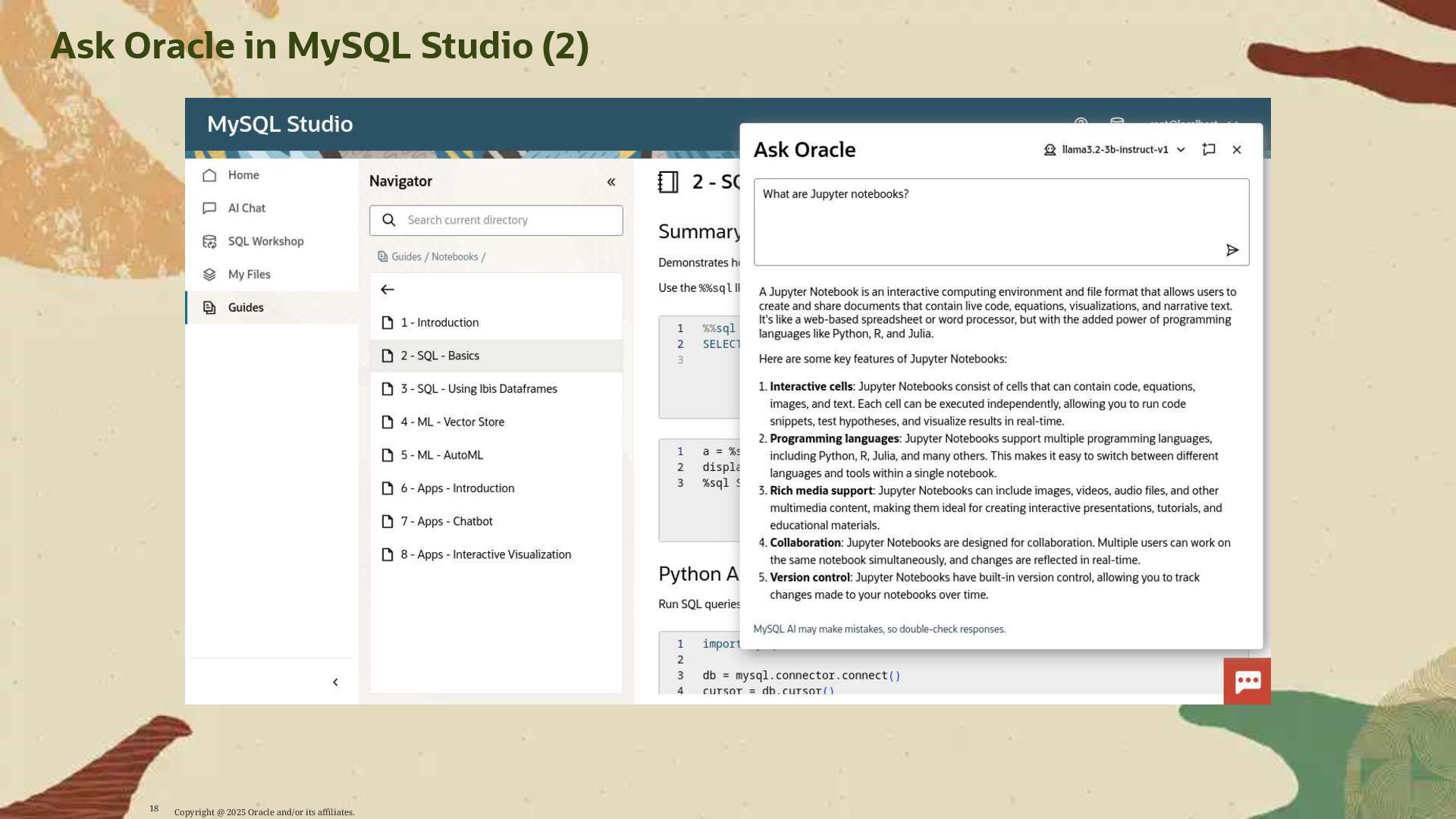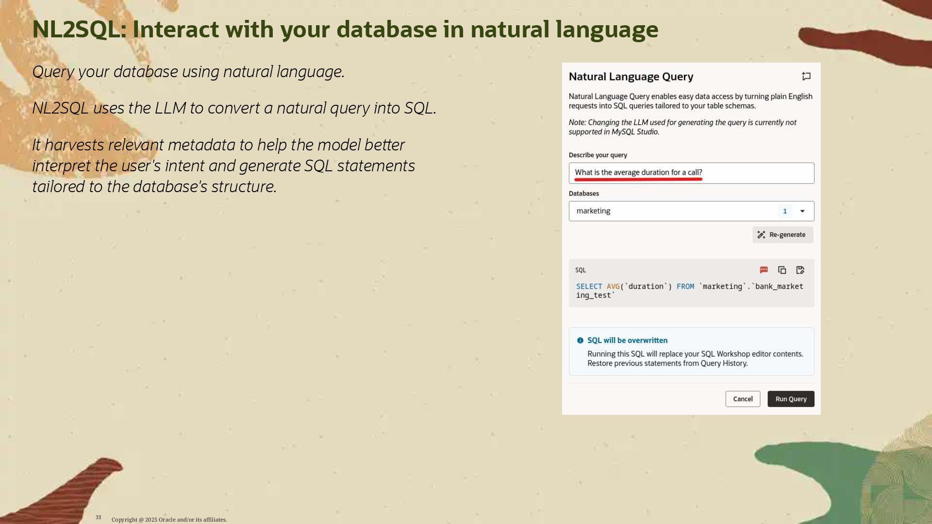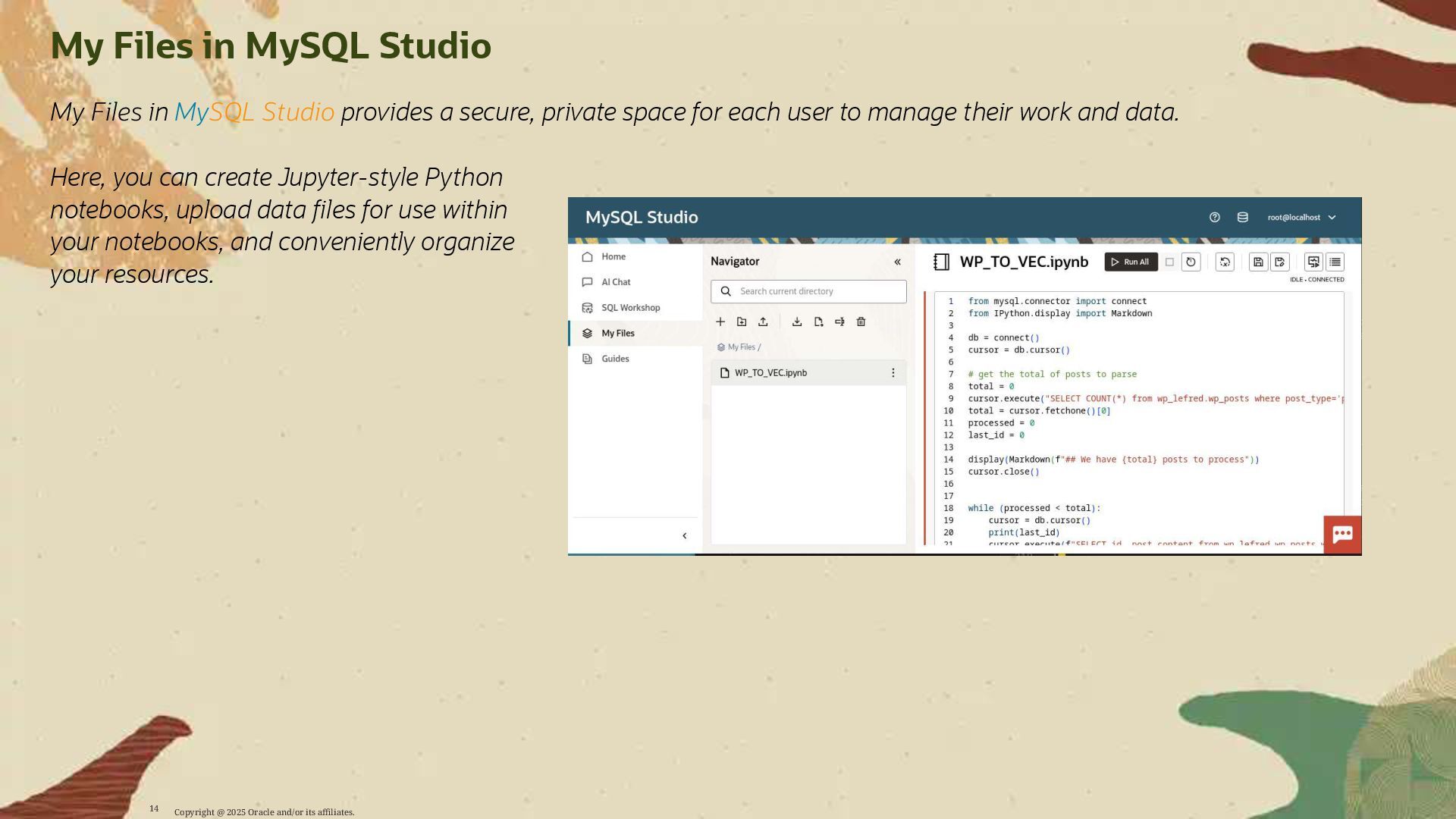 Participants will learn how to leverage MySQL AI to: