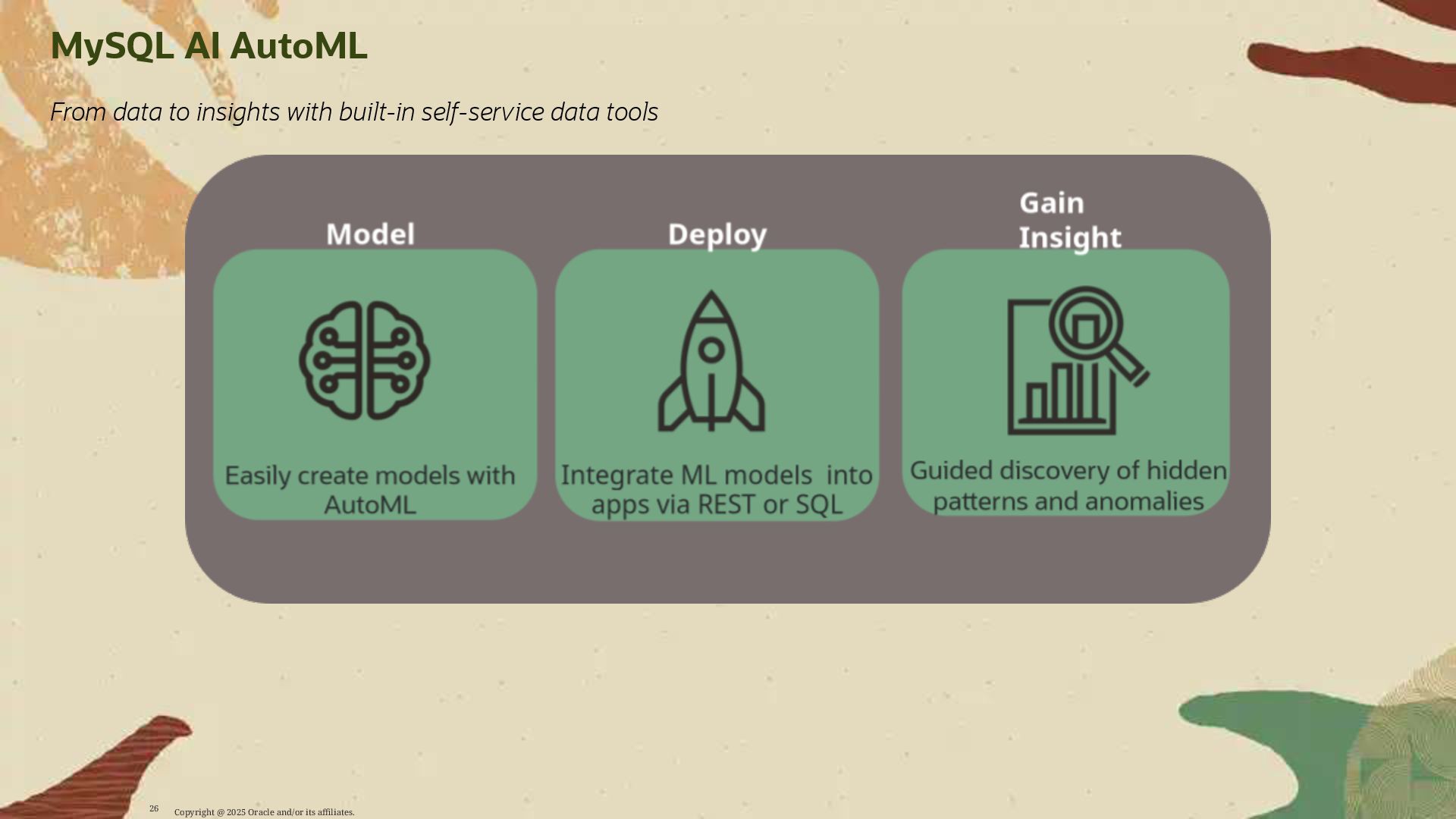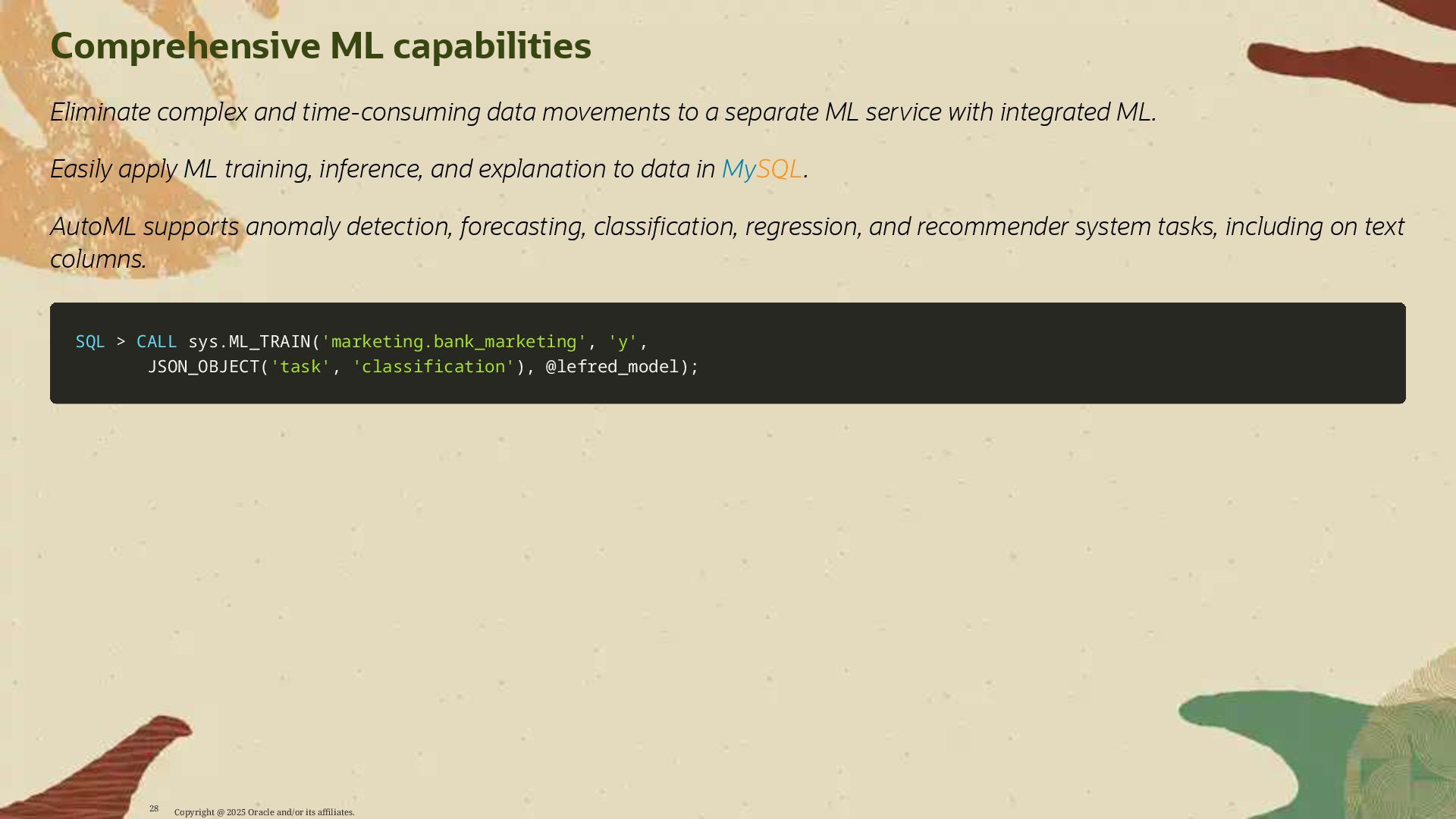 - AutoML for model training, evaluation, and deployment within the MySQL environment