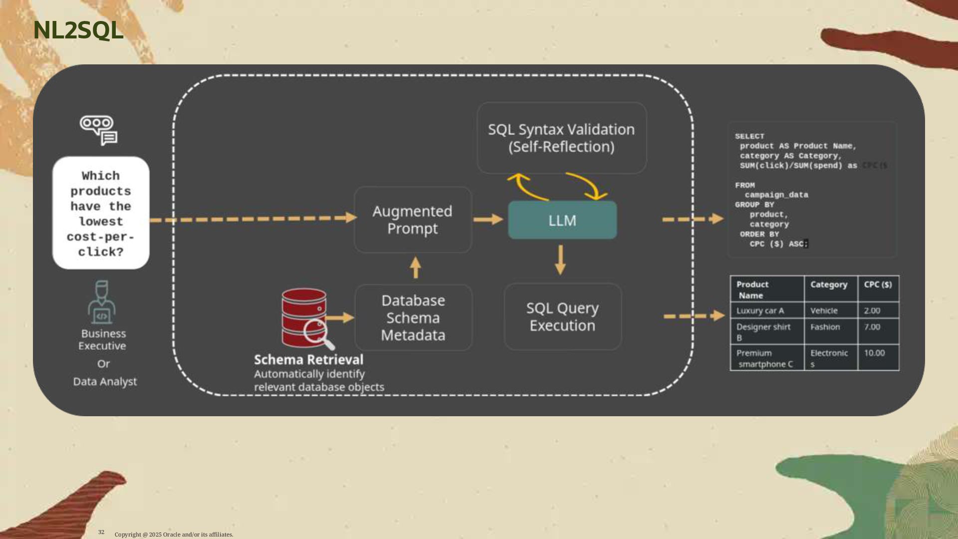 - NL2SQL translation using large language models to convert natural language into optimized SQL queries