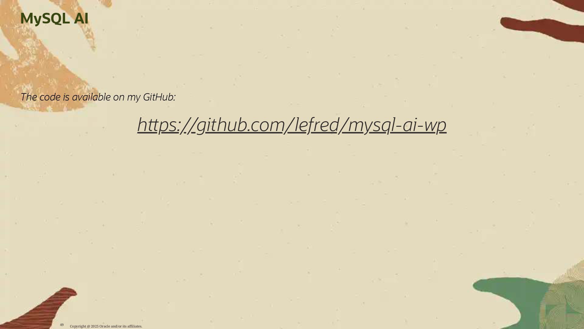 In this session, we dive into MySQL AI, the next evolution of the MySQL ecosystem that integrates machine learning and generative AI capabilities directly into the database engine.