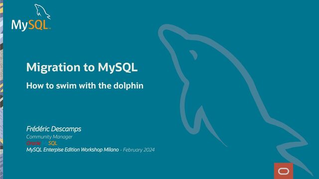 or Dump & Load utility to copy your data to MySQL. See: h ps://speakerdeck.com/lefred/migrating-from-mariadb-to-mysql h ps://lefred.be/content/migrate-from-mariadb-to-mysql-heatwave-easier-with-mysql-shell-8-2-1/ With other RDBMS, it's recommended to proceed in three steps: . dump the schemas de nition . x the schemas de nition and load them to MySQL . dump and load the data using csv format Copyright @ 2024 Oracle and/or its affiliates. 31
