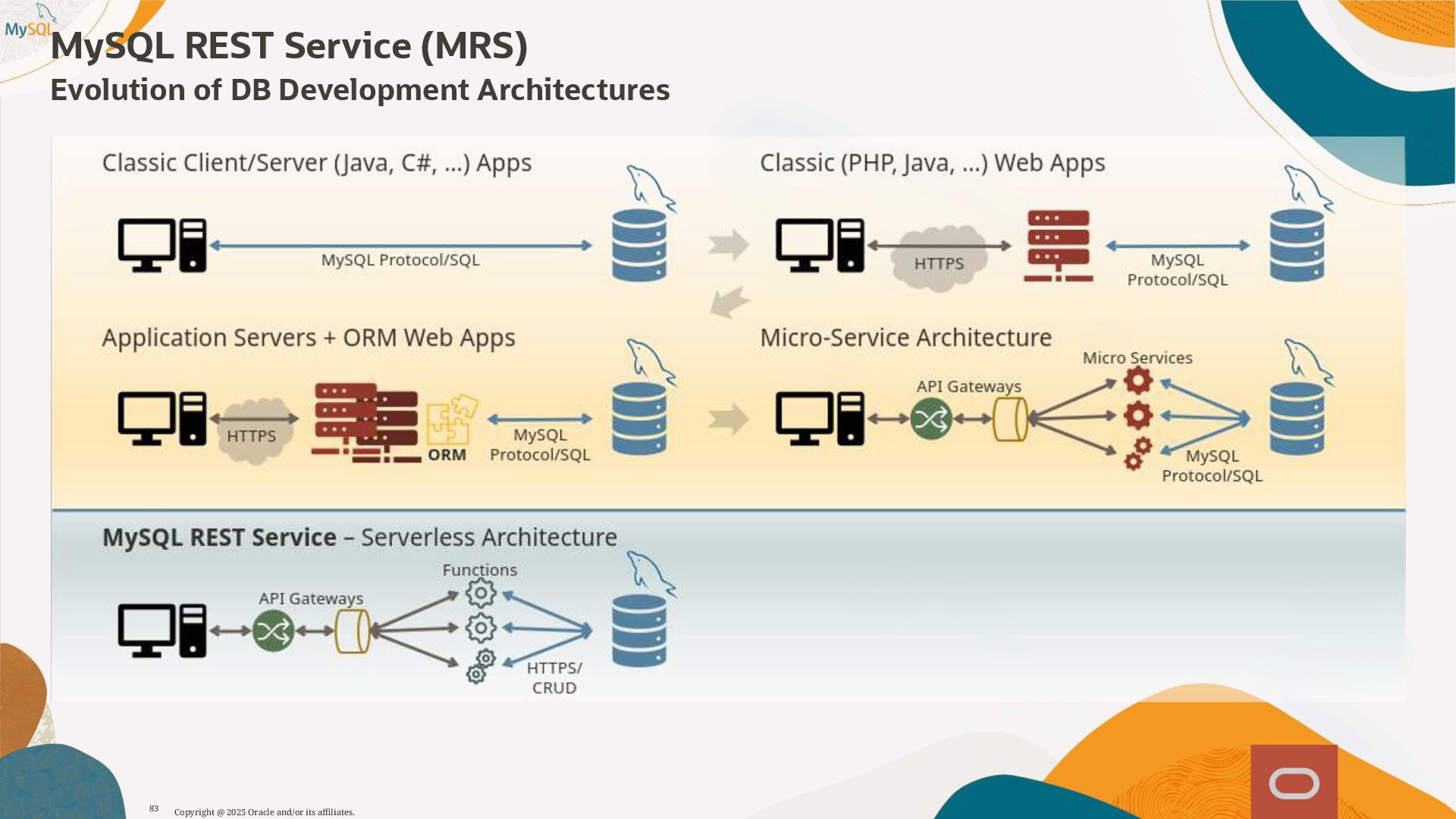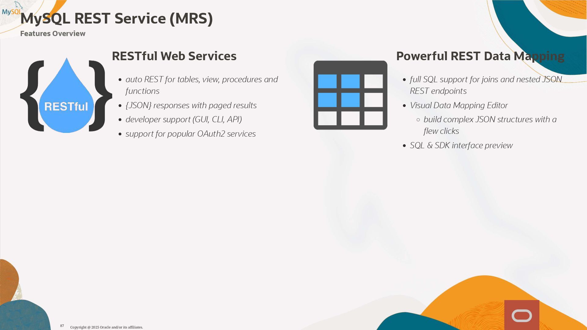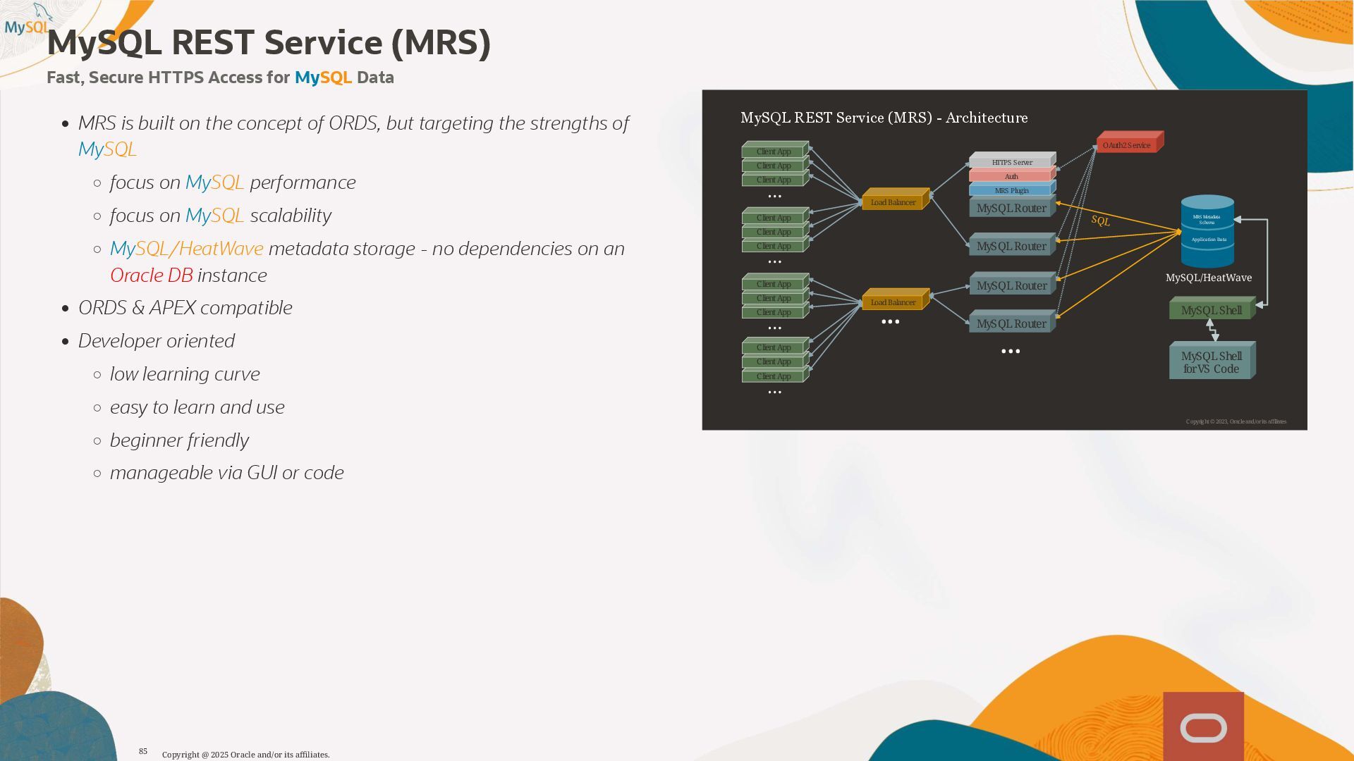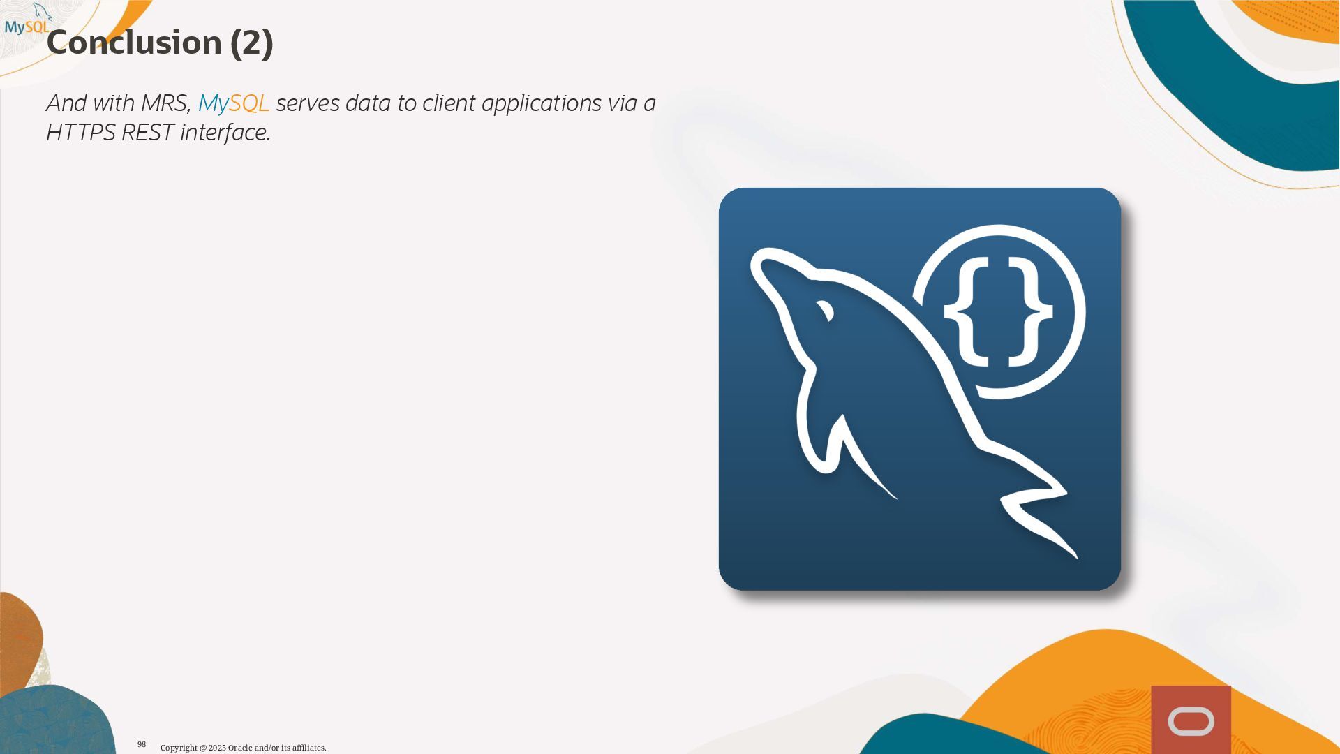 Finally, you will also see how it's possible to use this in the Cloud using MySQL HeatWave in OCI and discover the very new MRS, MySQL REST Service!