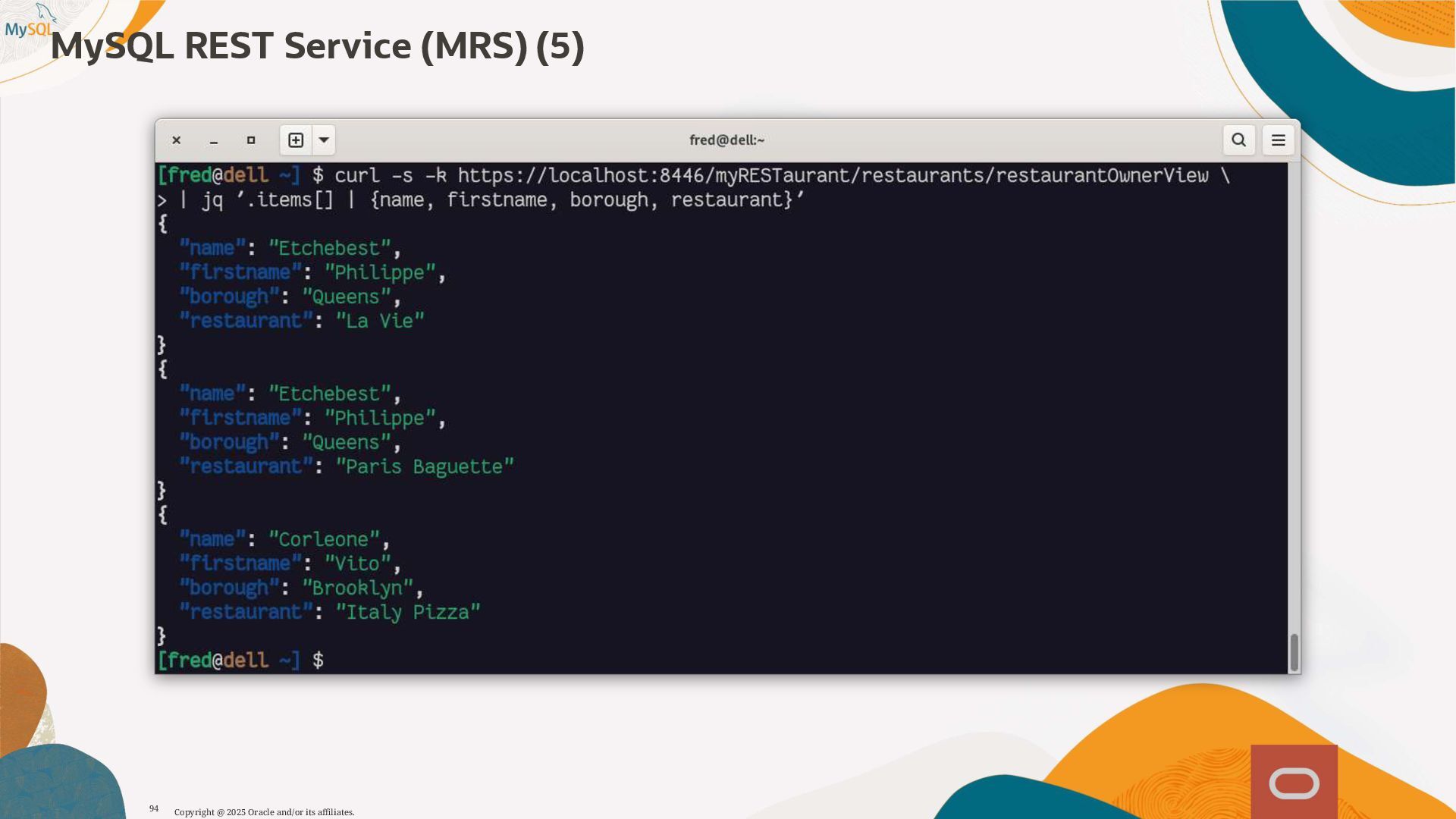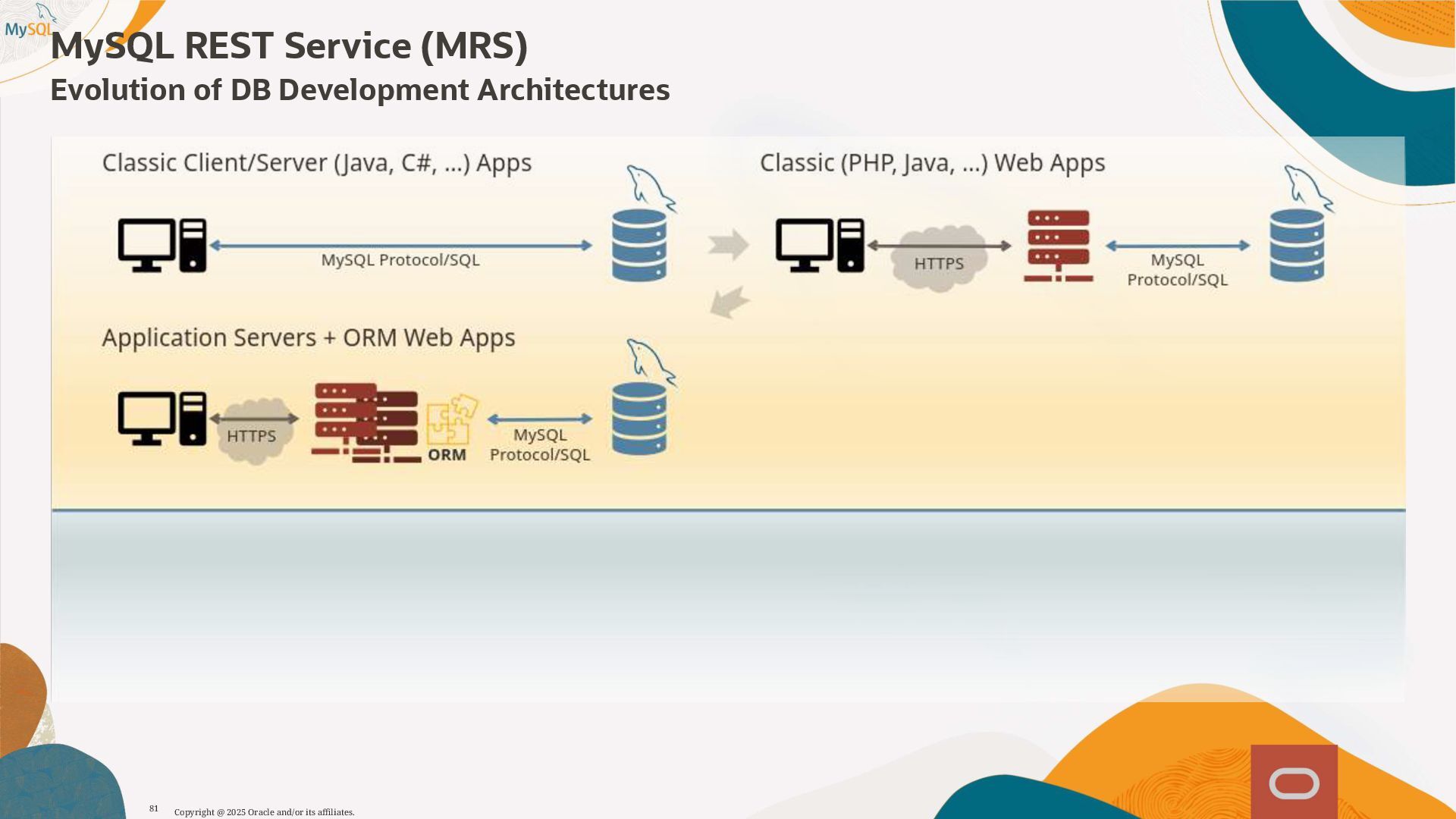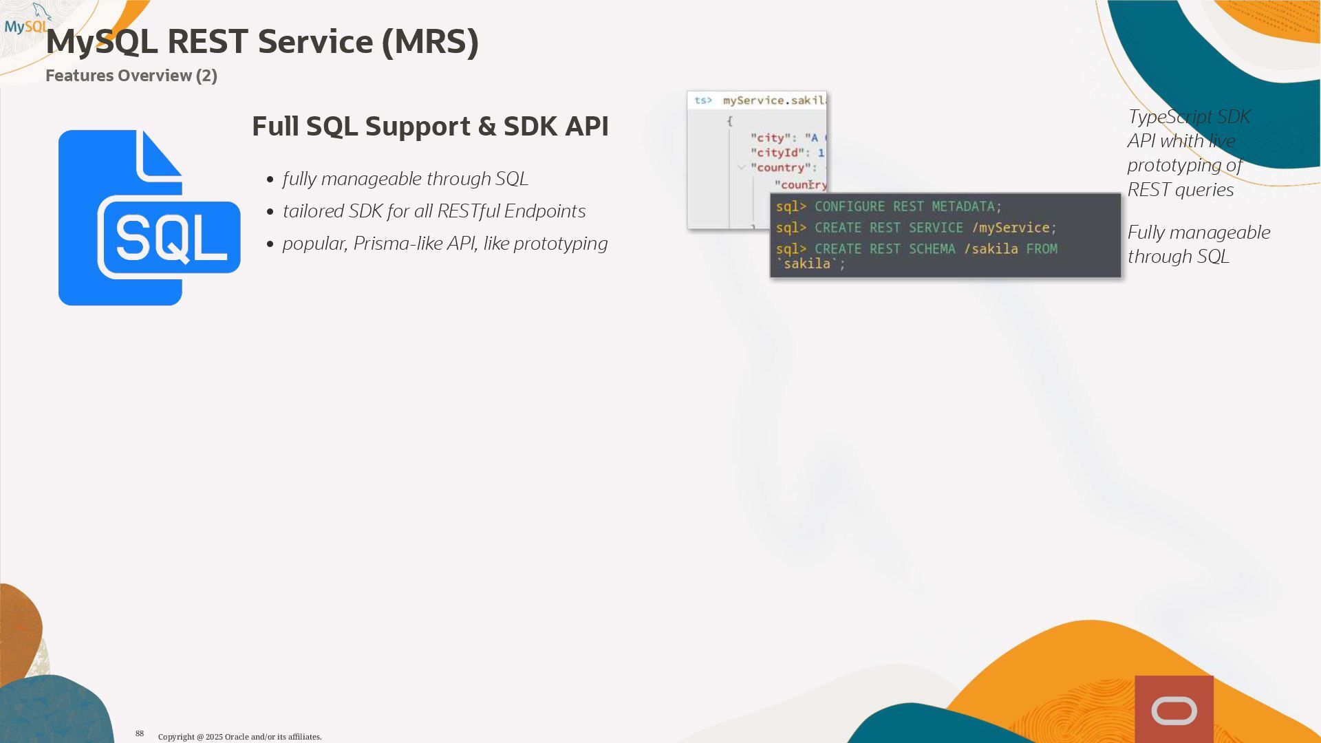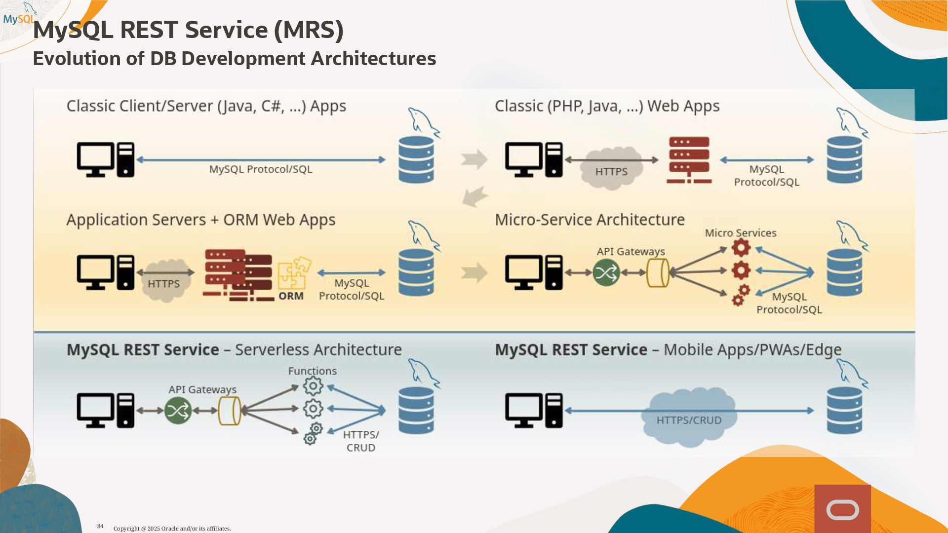 Finally, you will also see how it's possible to use this in the Cloud using MySQL HeatWave in OCI and discover the very new MRS, MySQL REST Service!