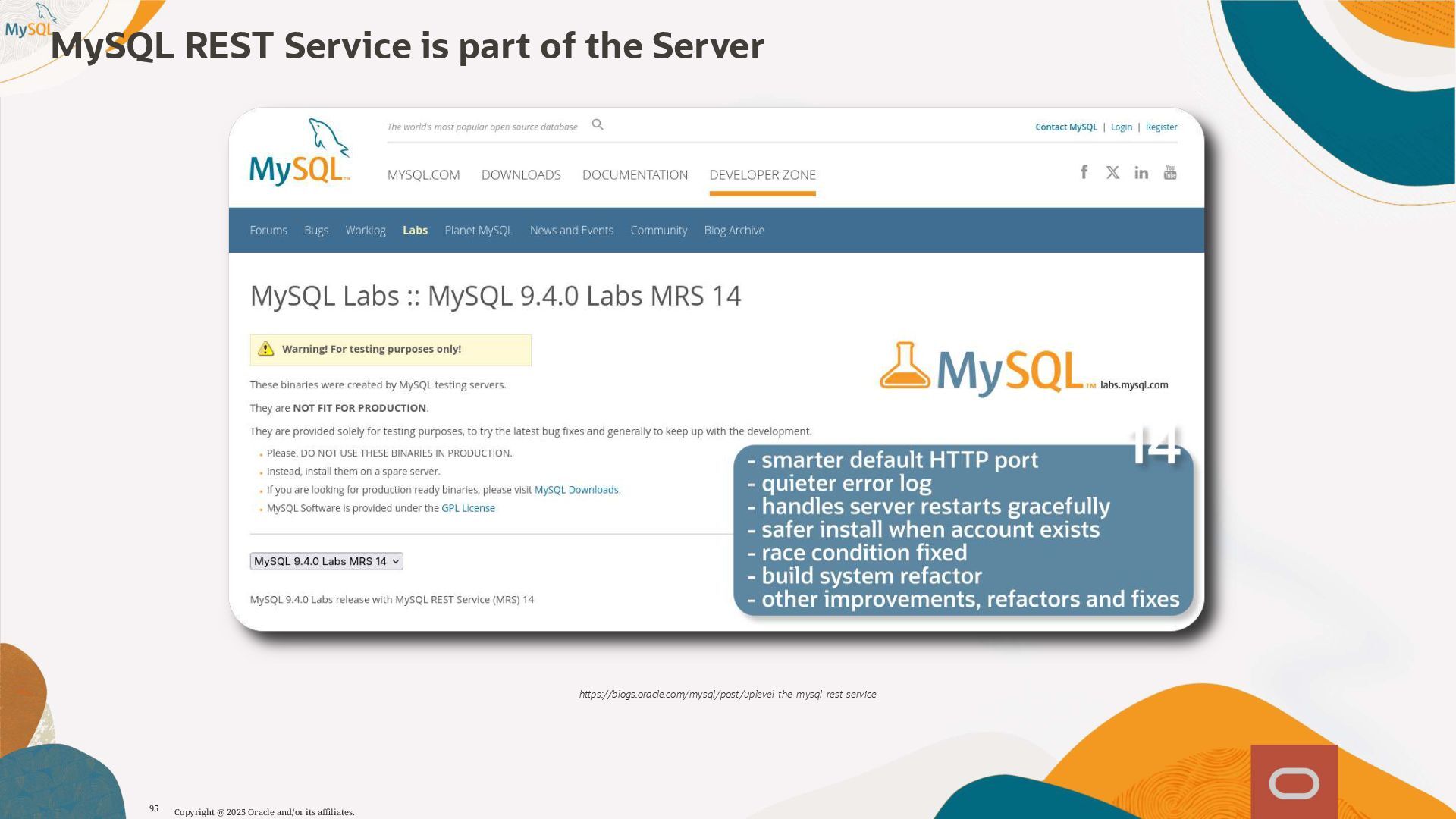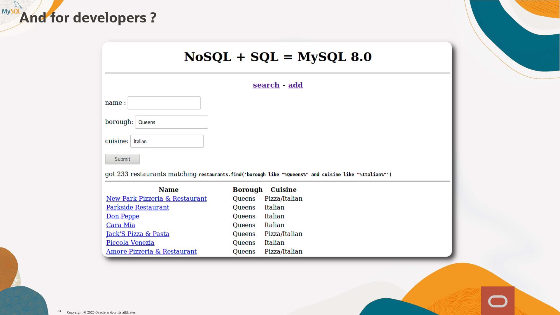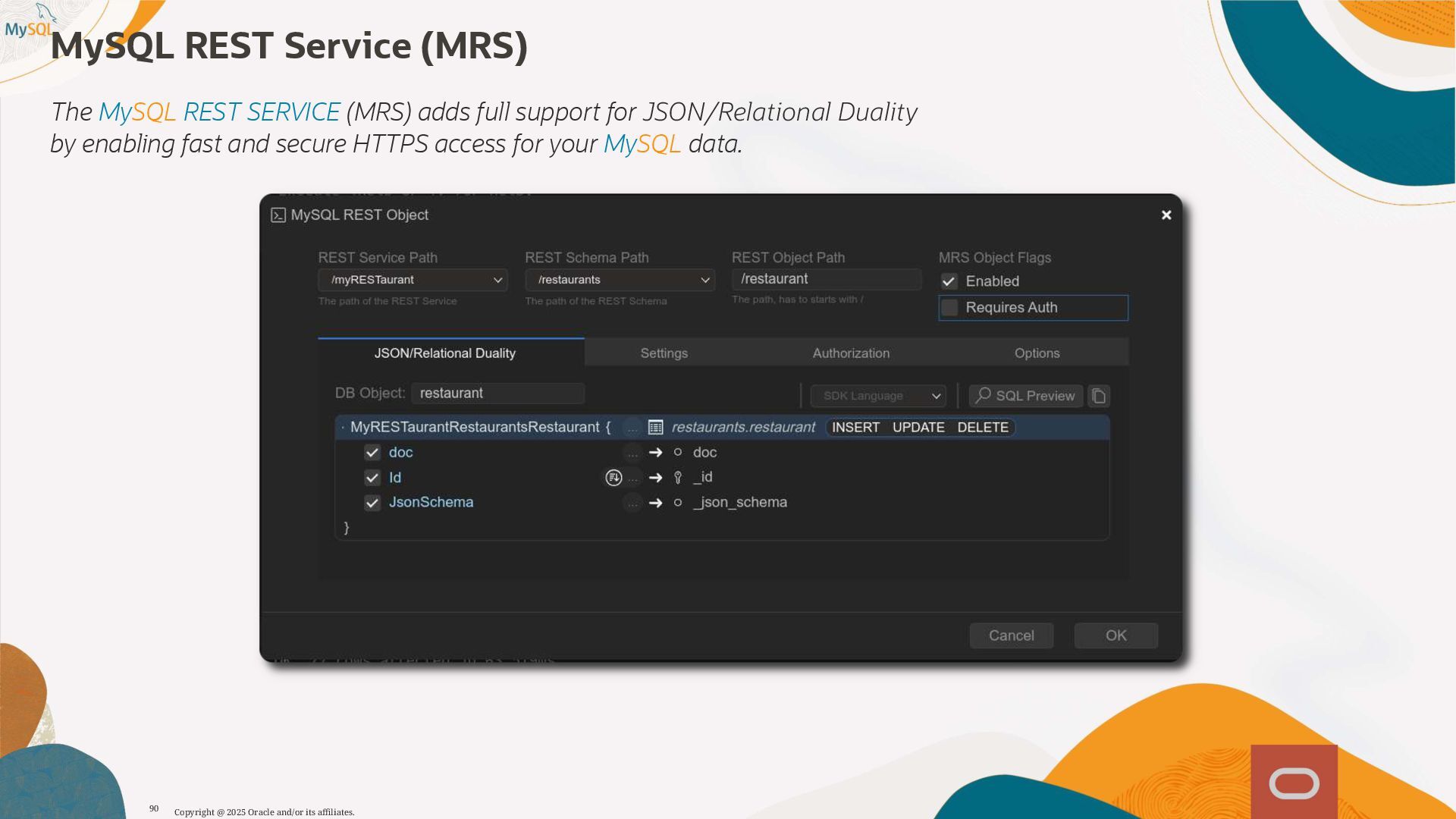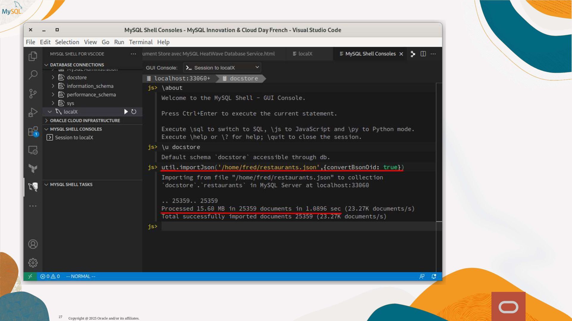Finally, you will also see how it's possible to use this in the Cloud using MySQL HeatWave in OCI and discover the very new MRS, MySQL REST Service!