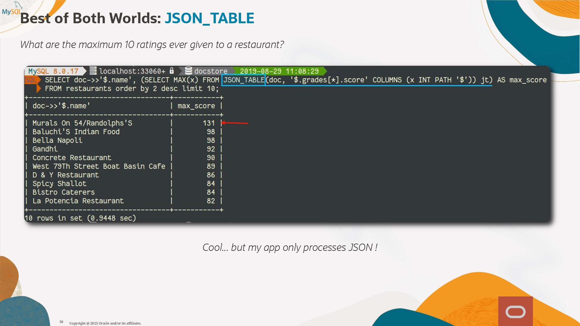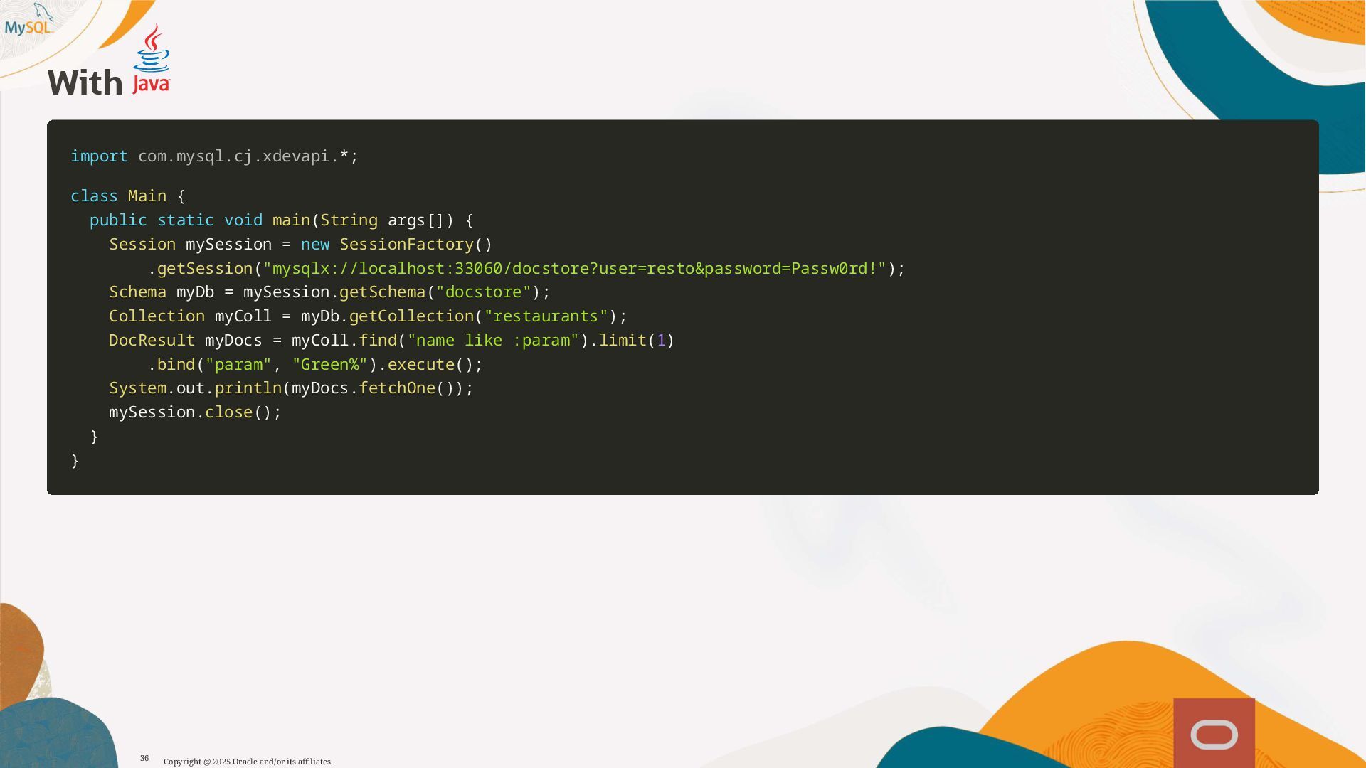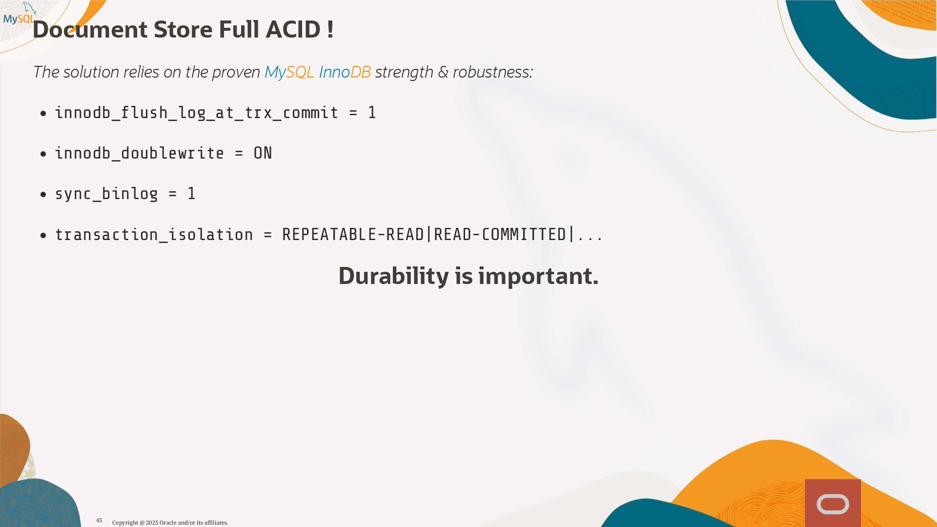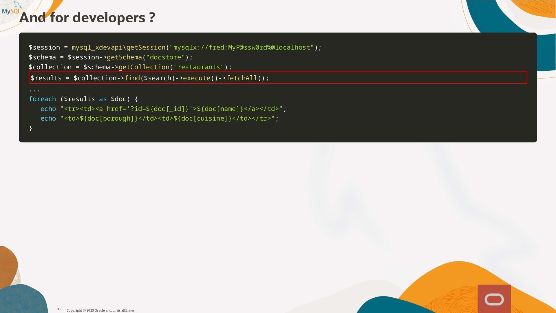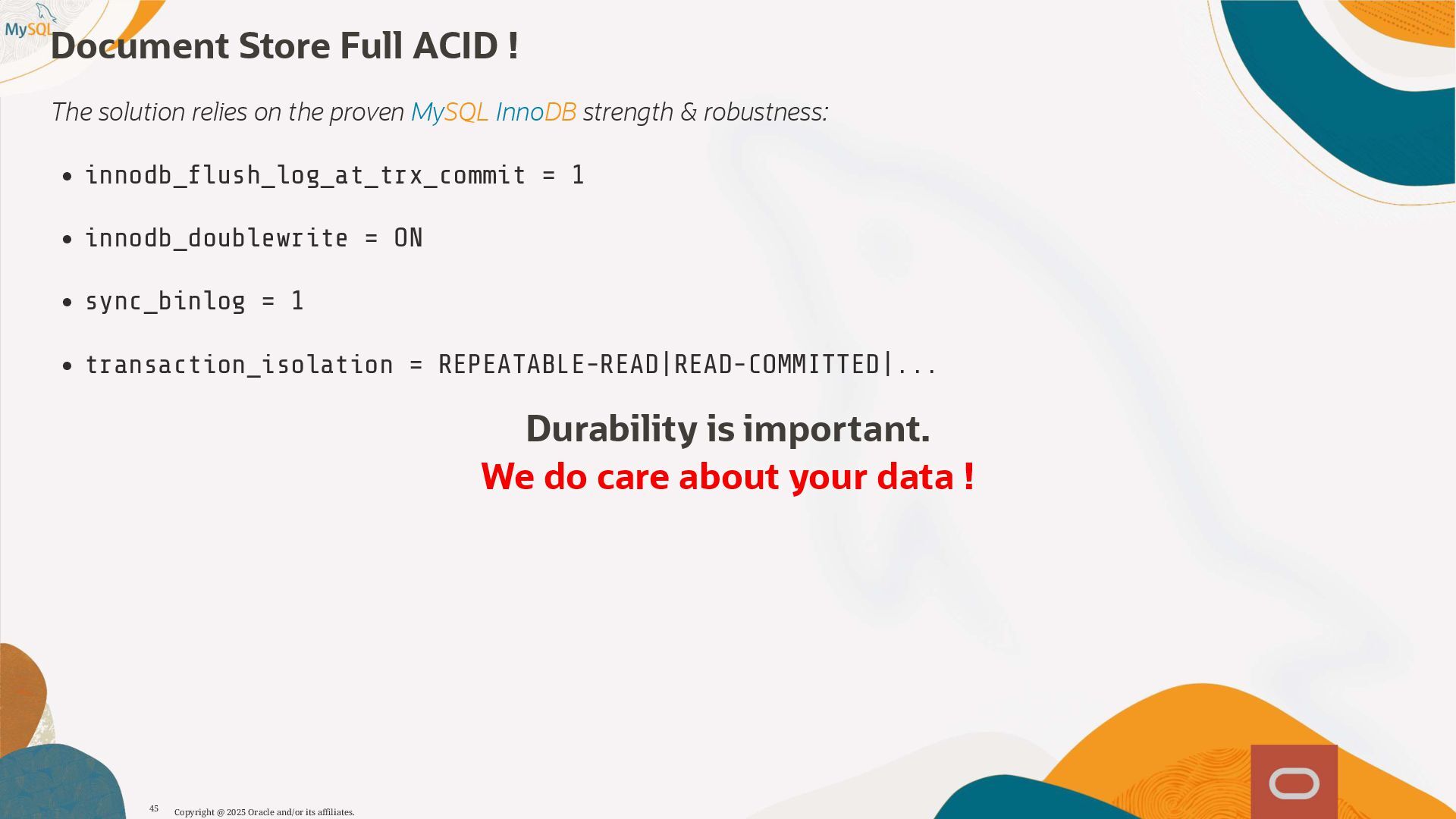 Join this session to discover how MySQL, thanks to the X dev API, allows you to store and manage JSON documents like any other Document Store.