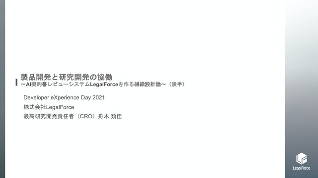 Developer eXperience Day 2021にて、LegalForceにおける組織設計論をCTO時武とCRO舟木から発表したセッションの資料です。 こちらはCRO舟木から発表した後半部分の資料となります。