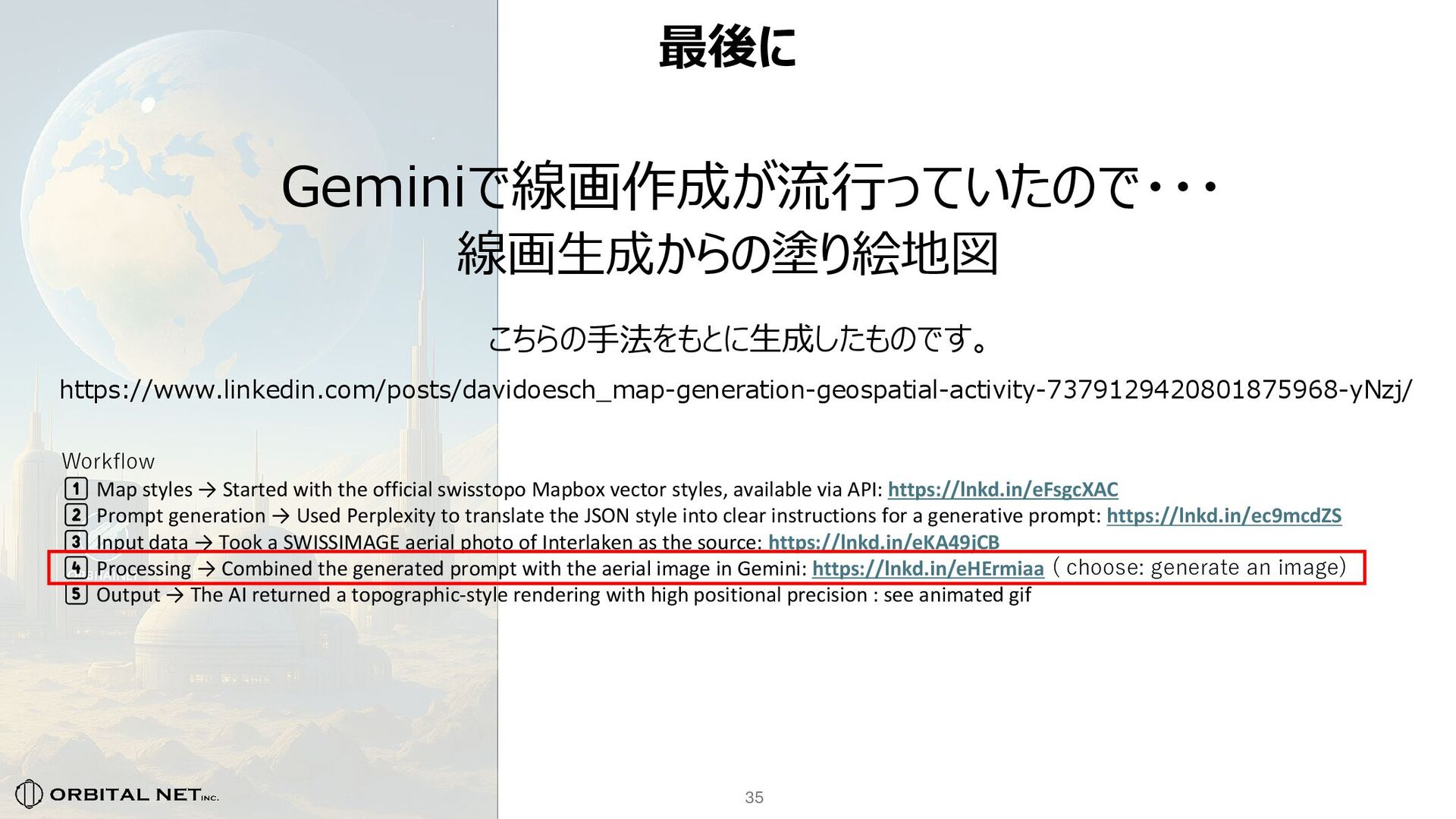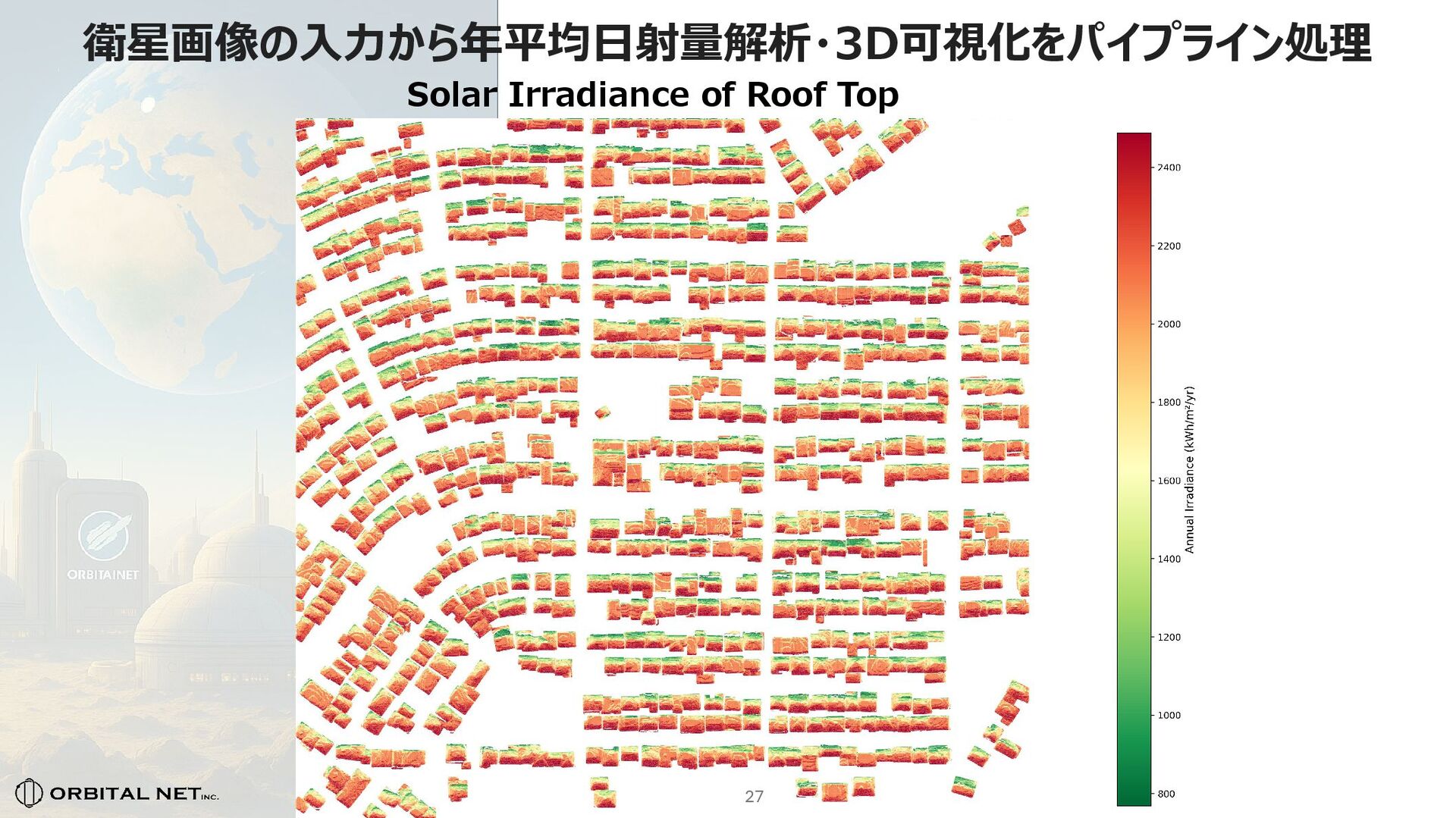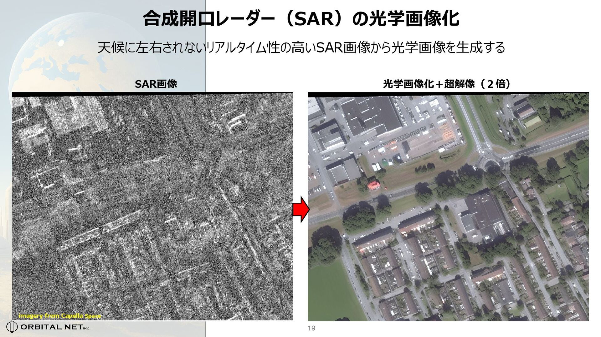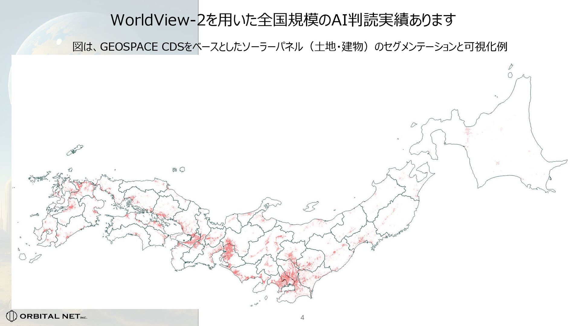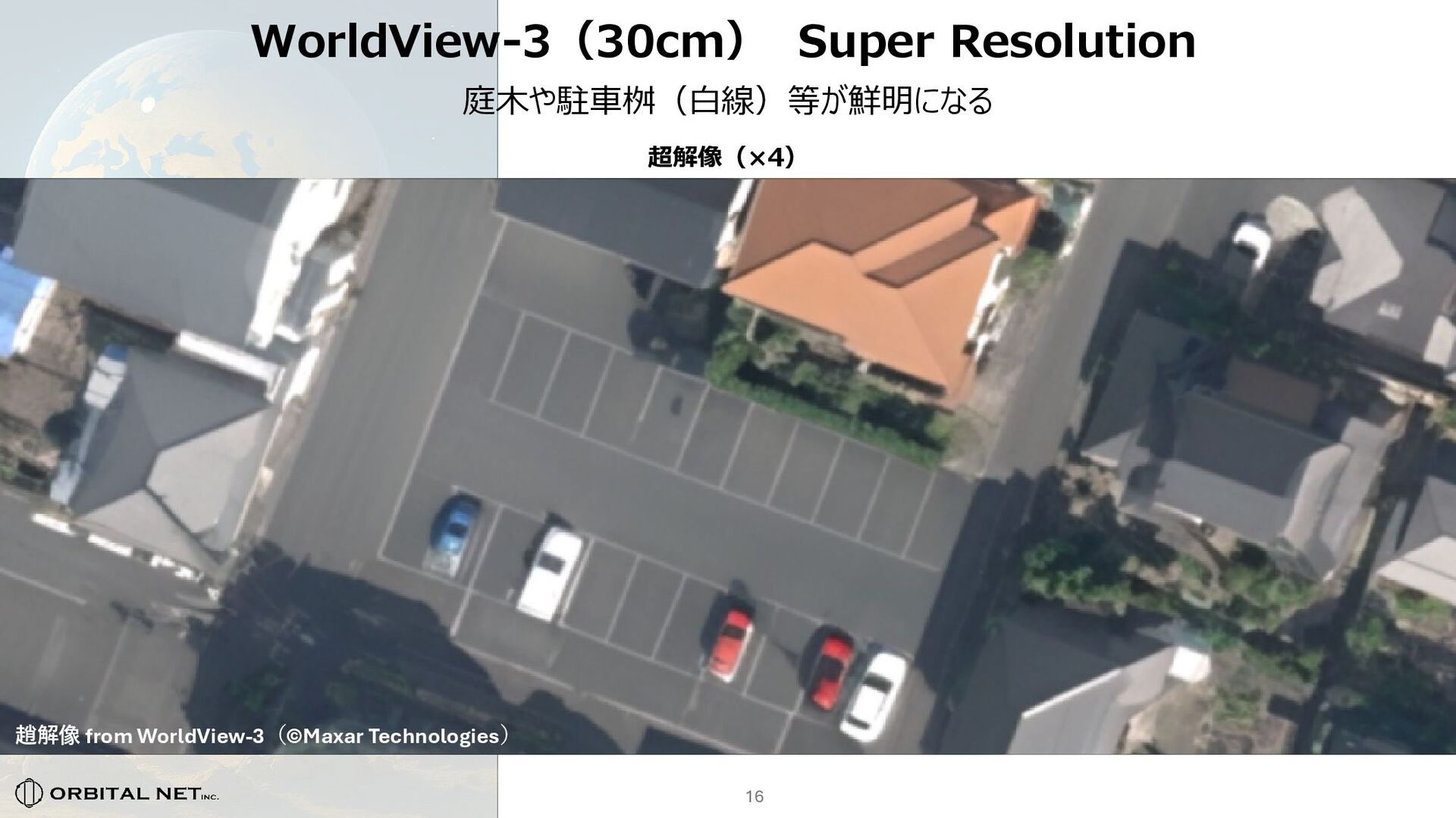 オービタルネットでは、様々な衛星画像を用いた地理空間情報の生成を行っています。本発表では、Capella(SAR), Sentinel-2, GRUS, WorldView-2, 3などさまざまな衛星画像を、拡散モデルベースの画像生成AIにより超(超)解像画像を生成したのち、2D(セグメンテーションとマスク正規化)及び3D(単眼深度推定=衛星画像からレーザー点群やDEMを用いず建物3Dモデルを生成)の地理空間情報を即時生成する取り組みをご紹介します。また、衛星画像の入力から地理空間情報の出力までをE2Eで実現する “AI as a Service” に向けた取り組みや、最近話題のS2DR3やDINOv3等の衛星画像解析のSOTAモデルについても触れたいと考えます。