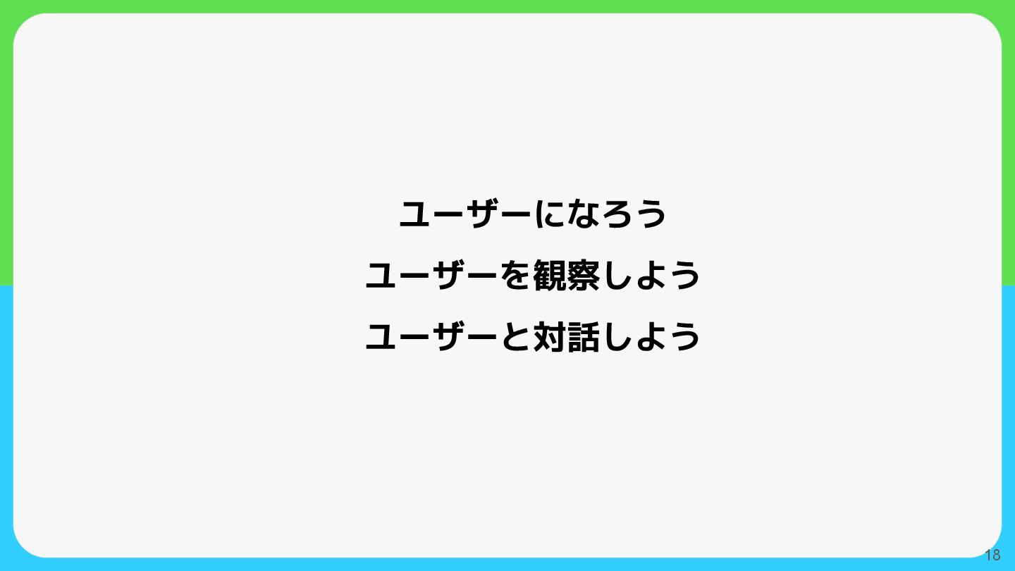 18 ユーザーになろう ユーザーを観察しよう ユーザーと対話しよう
