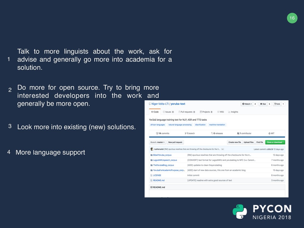 Natural language powered platforms have one big problem;Supporting indigenous African languages.This talk analyses some of the problems with these platforms and the work being done to introduce support for more African languages especially Yoruba