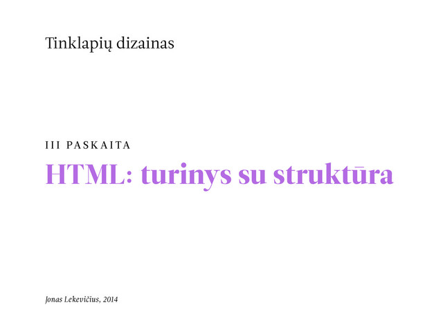 Tinklapių dizainas, 3 paskaita. HTML: turinys su struktūra.