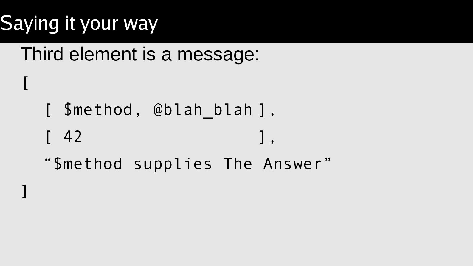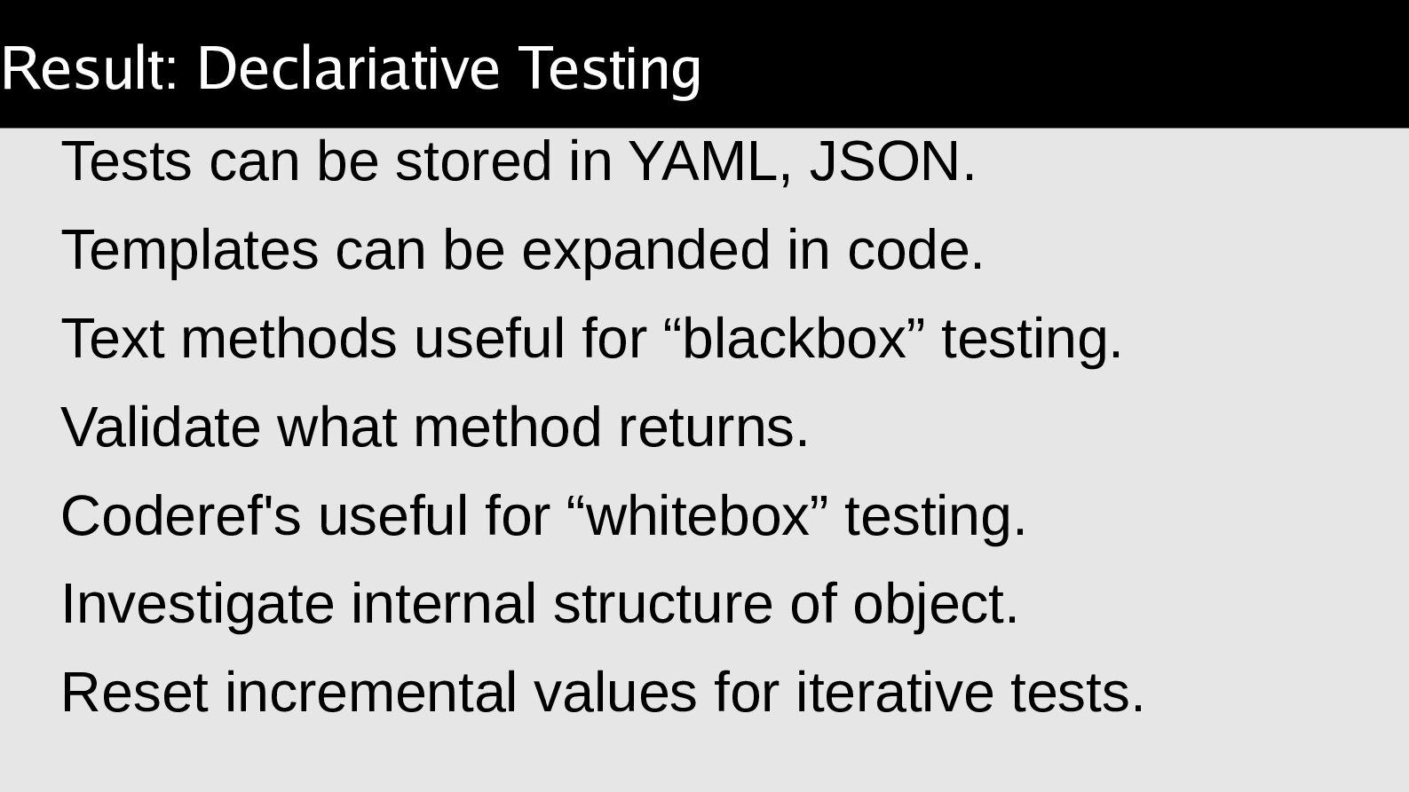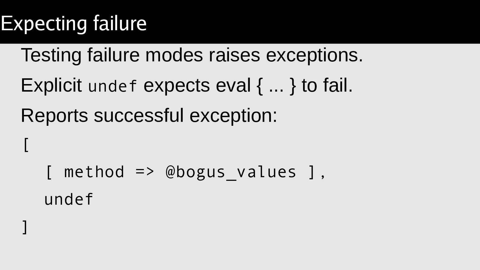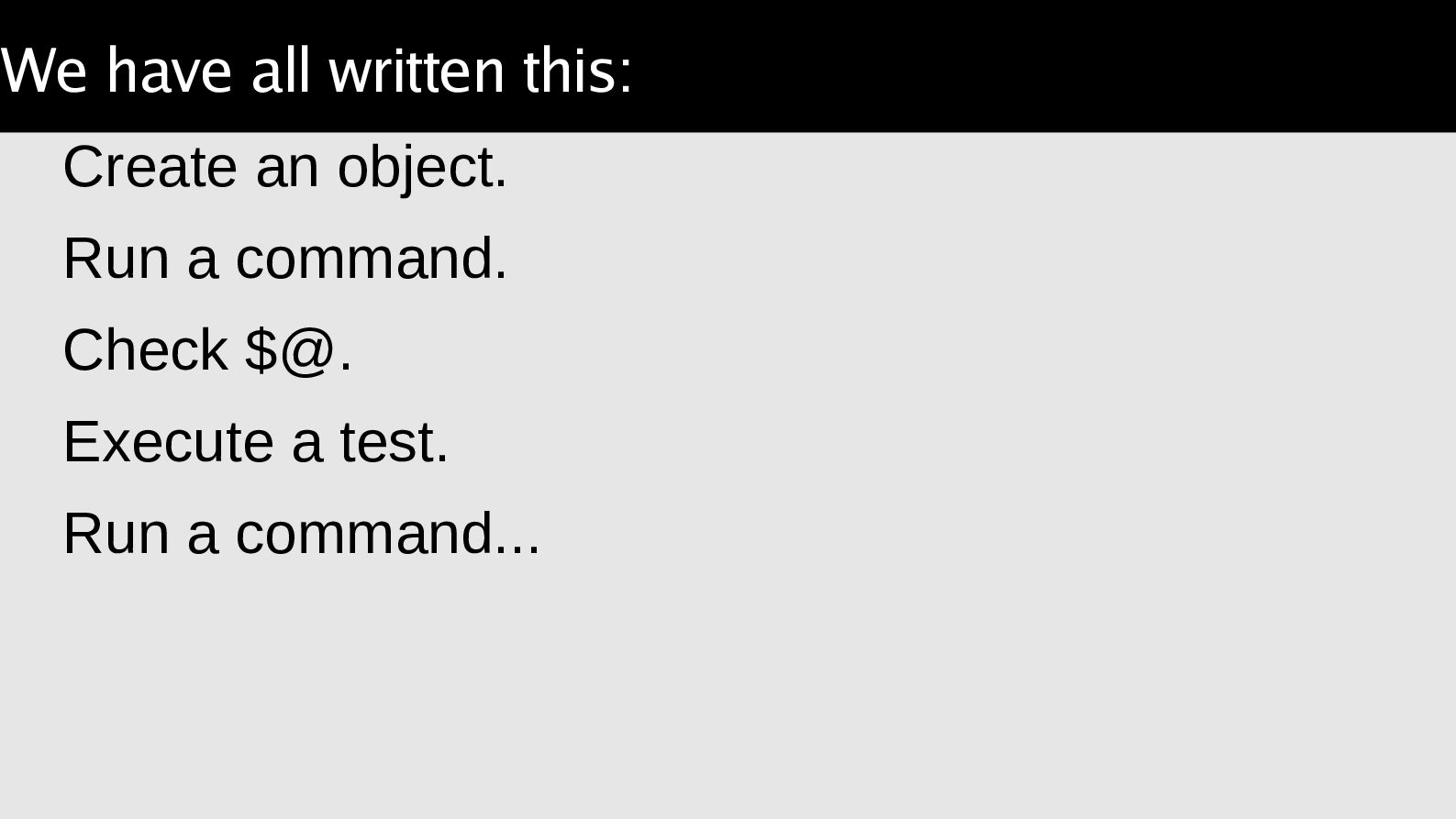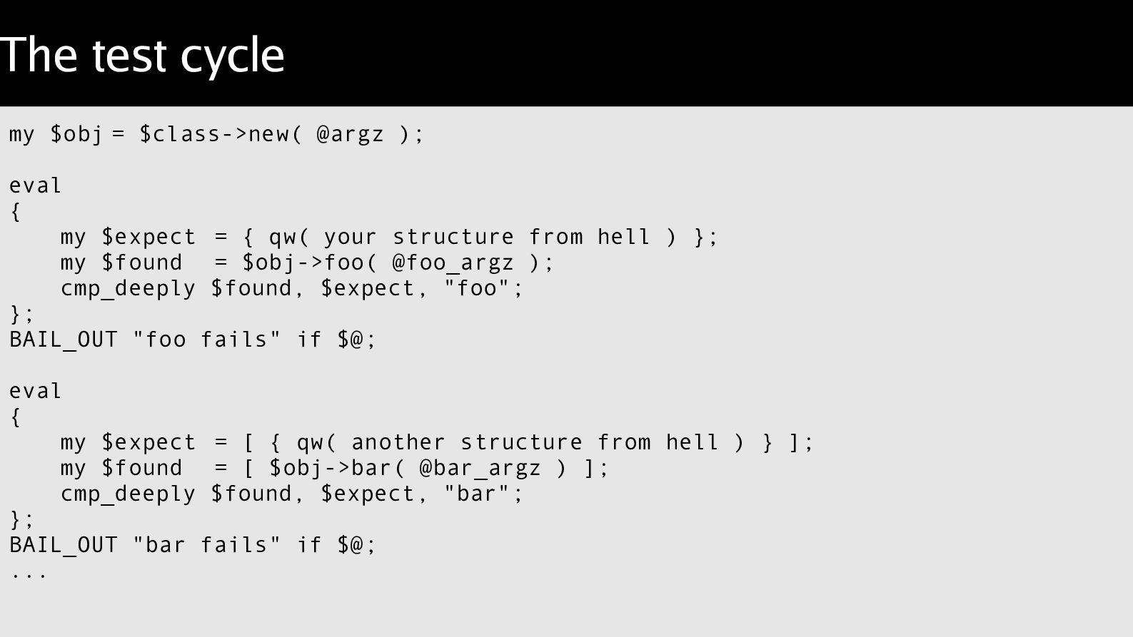 arguments, compare a result. Object::Excercise takes the lather,