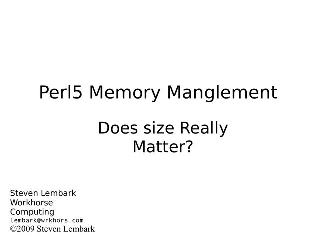 This talk looks at Perl's memory management of scalars, arrays, and hashes with a variety of techniques for controlling memory use and avoiding bloat.