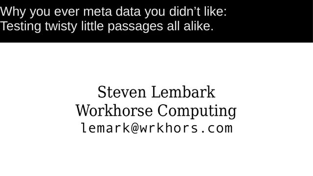 This talk describes how to encode test specifics into the basenames of files, allowing symlinks and file globs to do most of the work in driving and partitioning the tests.