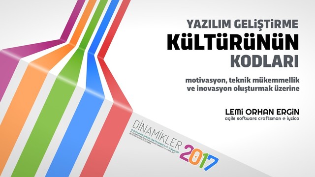 Bu oturumda, motivasyon, teknik mükemmellik, işbirliği, yardımlaşma, yenilikçilik ve başarı sağlayan bir yazılım geliştirme kültürünün nasıl kurulacağından bahsedeceğim. Yazılım dünyasına girmiş ve ilgilenen herkes katılabilir.