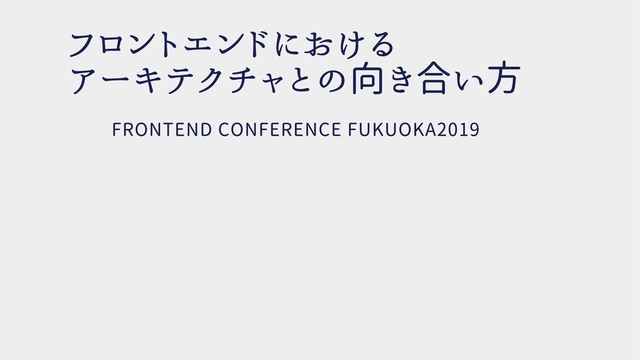 フロントエンドにおける アーキテクチャとの向き合い方 FRONTEND CONFERENCE FUKUOKA2019