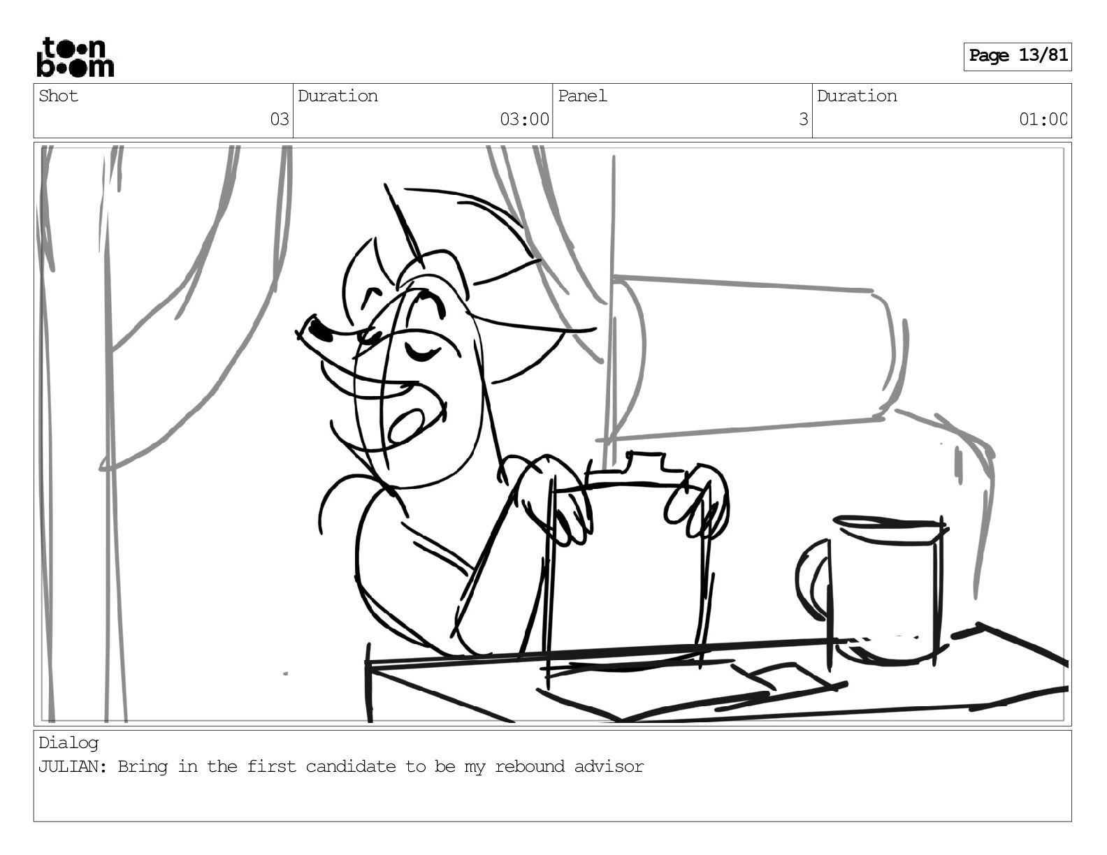 Shot 13 Duration 04:00 Panel 1 Duration 01:00 Page 63/81