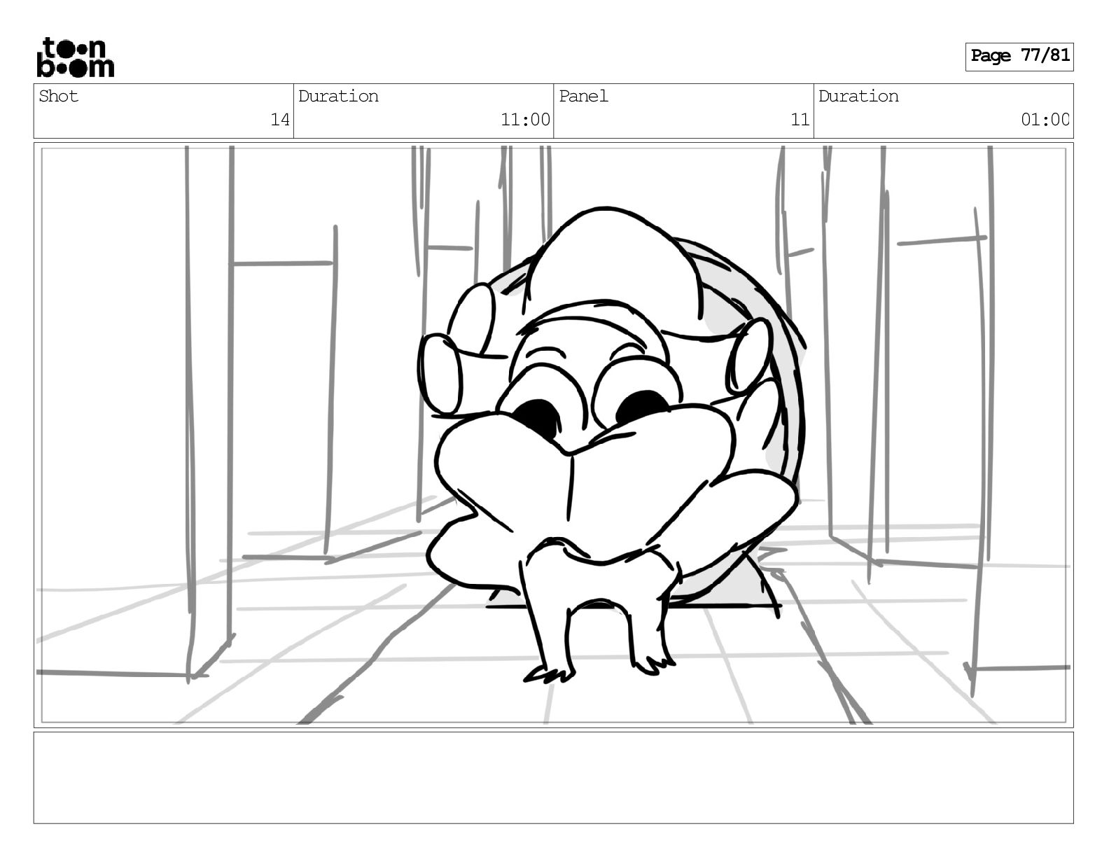 Shot 14 Duration 11:00 Panel 11 Duration 01:00 Page 77/81