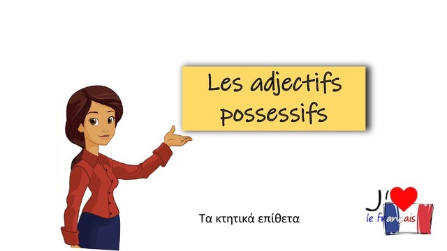 (πληθυντικός) πολλά κτήματα Masculin αρσενικό Féminin θηλυκό Mon Δικός μου Ton Δικός σου Son Δικός του, της Ma Δική μου Ta Δική σου Sa Δική του, της Masculin αρσενικό Féminin θηλυκό Mes Δικοί μου, δικές μου Tes Δικοί σου, δικές σου Ses Δικοί του, της / δικές του, της