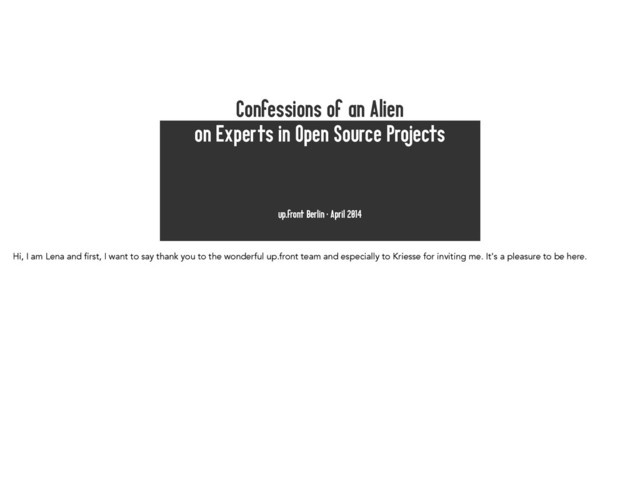Experts in Open Source Projects Hi, I am Lena and first, I want to say thank you to the wonderful up.front team and especially to Kriesse for inviting me. It's a pleasure to be here.