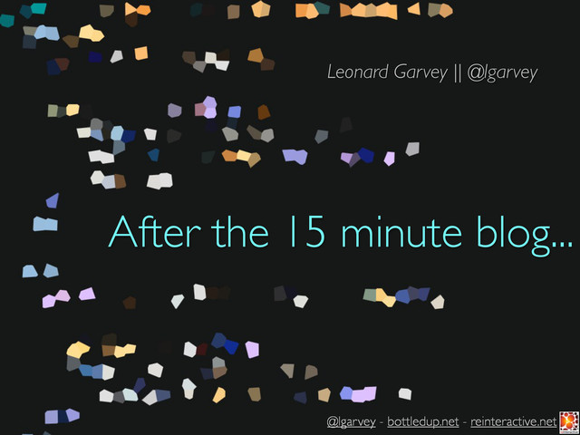 A condensed version of https://speakerdeck.com/lengarvey/beyond-the-15-minute-blog-1