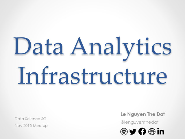 first (before you hire a data scientist!) • Build it right: stable – fast – scalable. o There is no silver bullet: • Understand what you need • Always do more research o Data infrastructure is NOT that hard! • Utilize existing, modern technologies • Avoid old, proprietary technology that were built for the 90s!