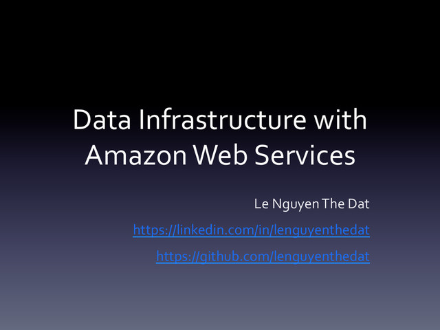 Building your data infrastructure from the ground up with Amazon Web Services - my presentation for the AWS Singapore April 2015 Meet up. For more info: http://www.meetup.com/AWS-SG/events/221096197/