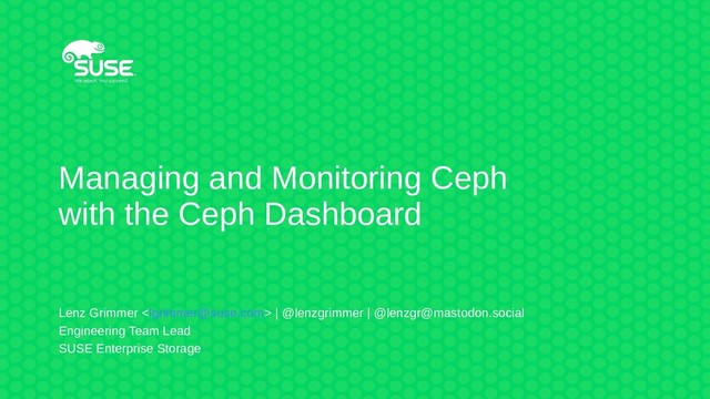 Managing and Monitoring Ceph with the Ceph Dashboard Lenz Grimmer