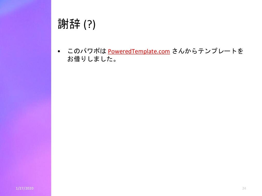 24 謝辞 (?) • このパワポは PoweredTemplate.com さんからテンプレートを お借りしました。 1/27/2020
