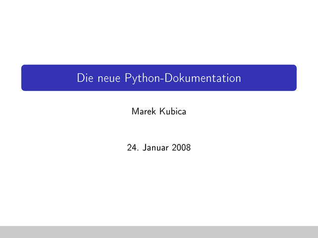 Interessenten Umständlich zu generieren - von Fred L. Drake angepasstes LaTeX2HTML keine Suchfunktion (nur über Google-Bot und pyhelp.cgi) http://starship.python.net/crew/theller/pyhelp.cgi Look von 1995 Am Inhalt zu wenige Beispiele keine Möglichkeit für User-Kommentare wie in PHP (also nicht Web 2.0-kompatibel) Schlecht verknüpft, Dinge schwer aufzunden