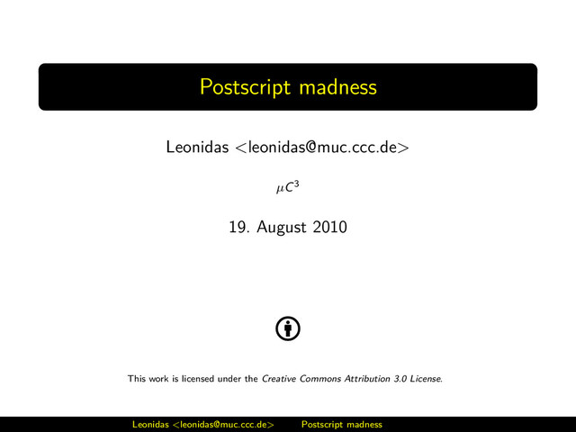 Type1 Fonts deine Mutter! Über PostScript von Adobe anno dazumal für Drucker entworfen stackbasiert wie viele VMs, etwa JVM man programmiert indem man „Wörter“ auf den Stack wirft Referenz und viele Bücher verfügbar Leonidas <[email protected]> Postscript madness