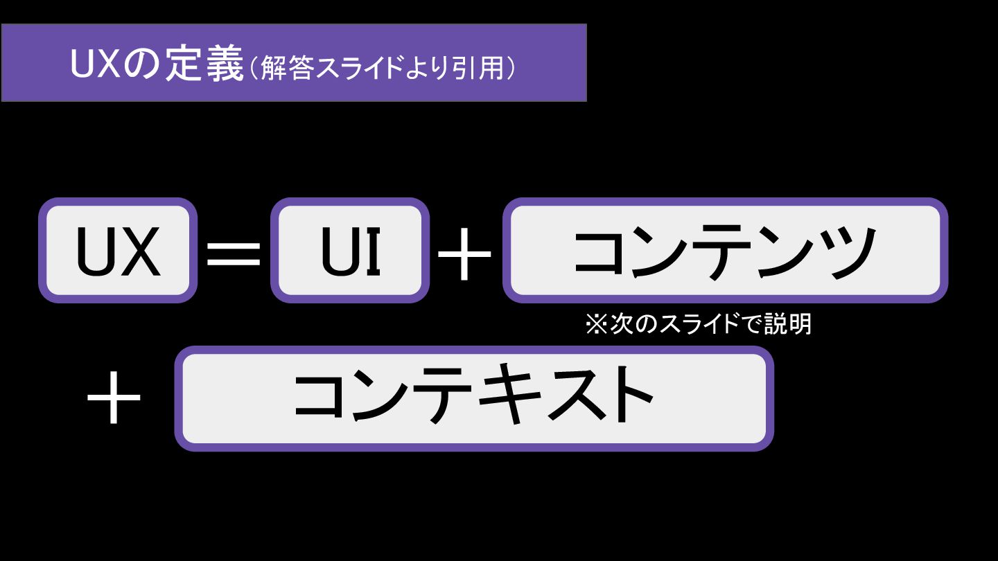 ◦ 順序としては「コンテンツ→コンテキスト→UX→UI」での検討が理想と考えたが、コン テンツ/コンテキストの検討が浅いままUXから考えていた気がする