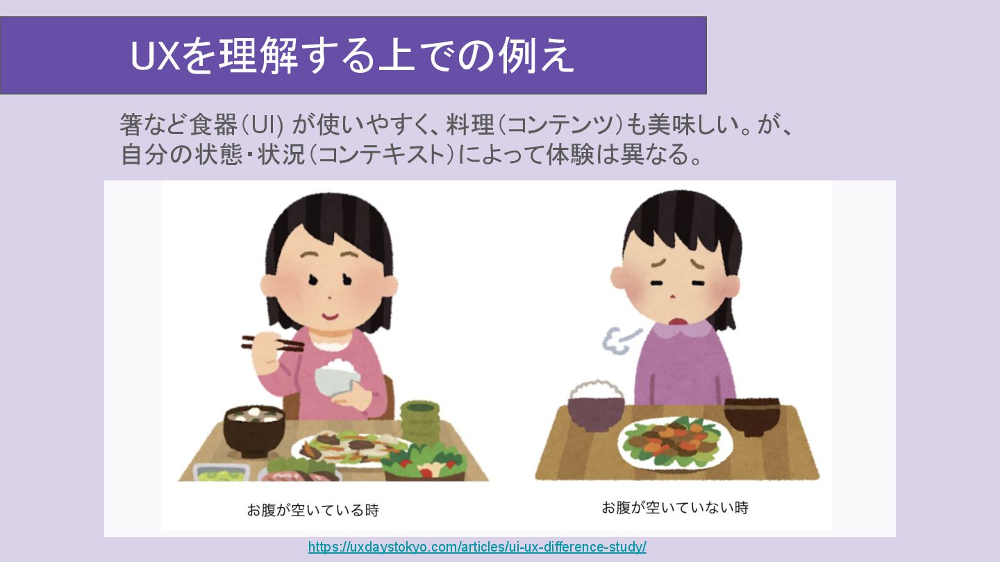 • 仕事でもUXを共有する際に、「コンテキスト」と「コンテンツ」を構造化したうえで、共通言語で 話していけるようにする