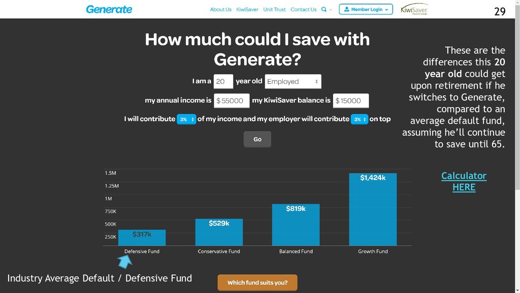 Volatility is likely to be highest of the funds - Also suitable if you are intending to leave your money in KiwiSaver for at least 10+ years and don’t mind drops along the way Conservative funds - Volatility is likely to be the lowest - Suitable if you expect to spend your KiwiSaver within the next 1-5 years Balanced funds - Volatility is likely to be higher than Conservative funds but lower than Growth funds - Suitable if you expect to spend your KiwiSaver within the next 5-10 years Growth funds - Volatility is likely to be higher than Balanced funds but lower than Aggressive funds - Suitable if you intend to spend your KiwiSaver after 10 years The longer you have until you withdraw, the more growth assets you should hold to maximise your Kiwisaver’s potential. But, if you are planning to buy your first home or nearing retirement in the next five years, you should consider the Conservative Fund. Risk + Growth Defensive < Fund Type > Aggressive 21