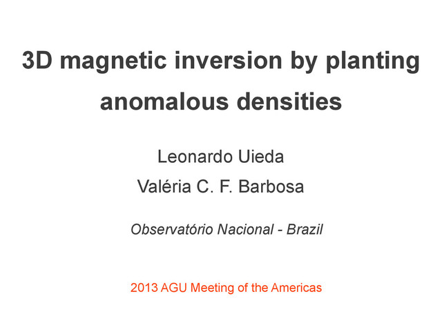 3D magnetic inversion by planting anomalous densities 2013 AGU Meeting of the Americas