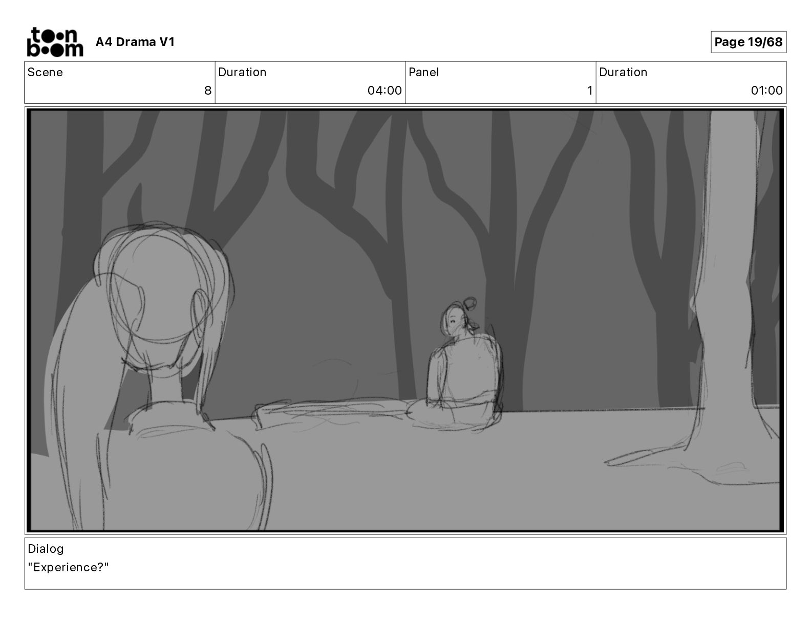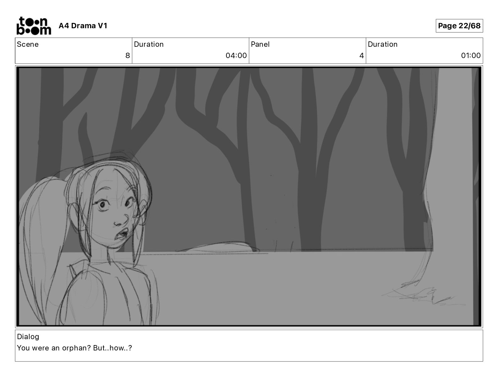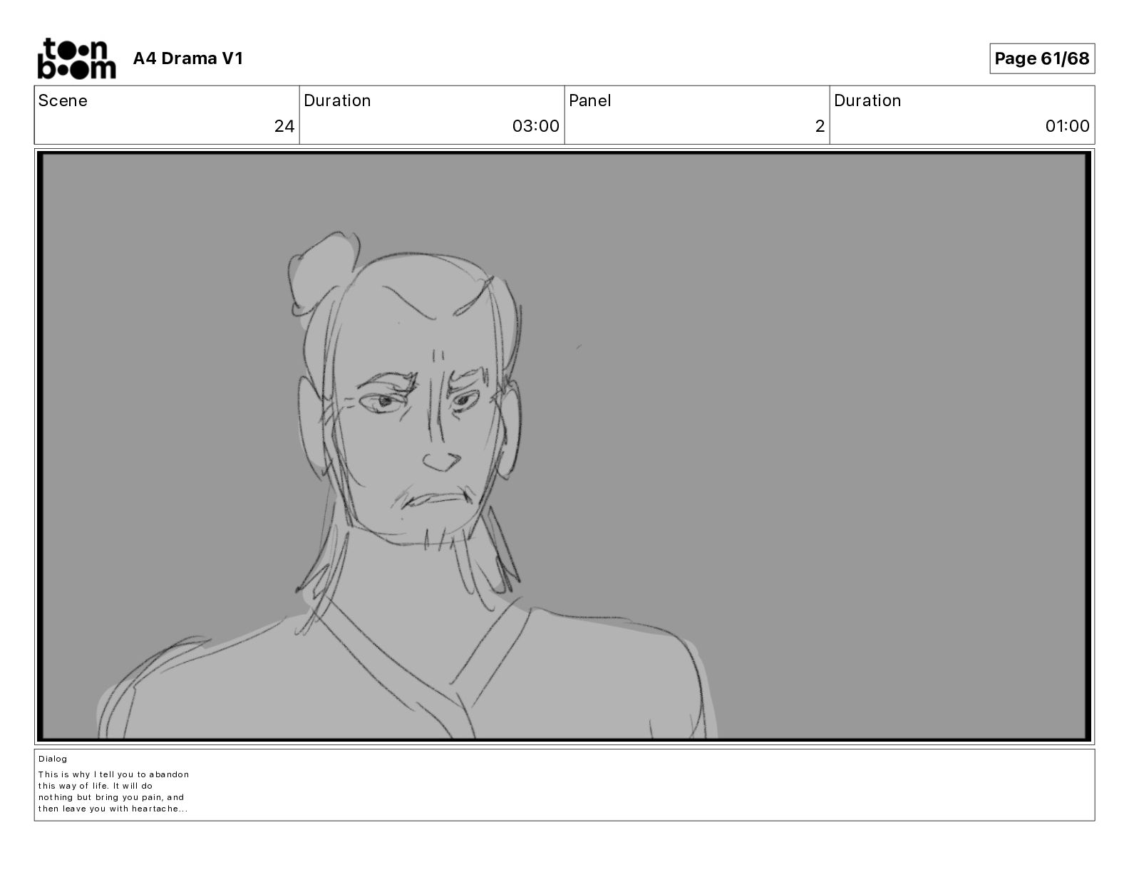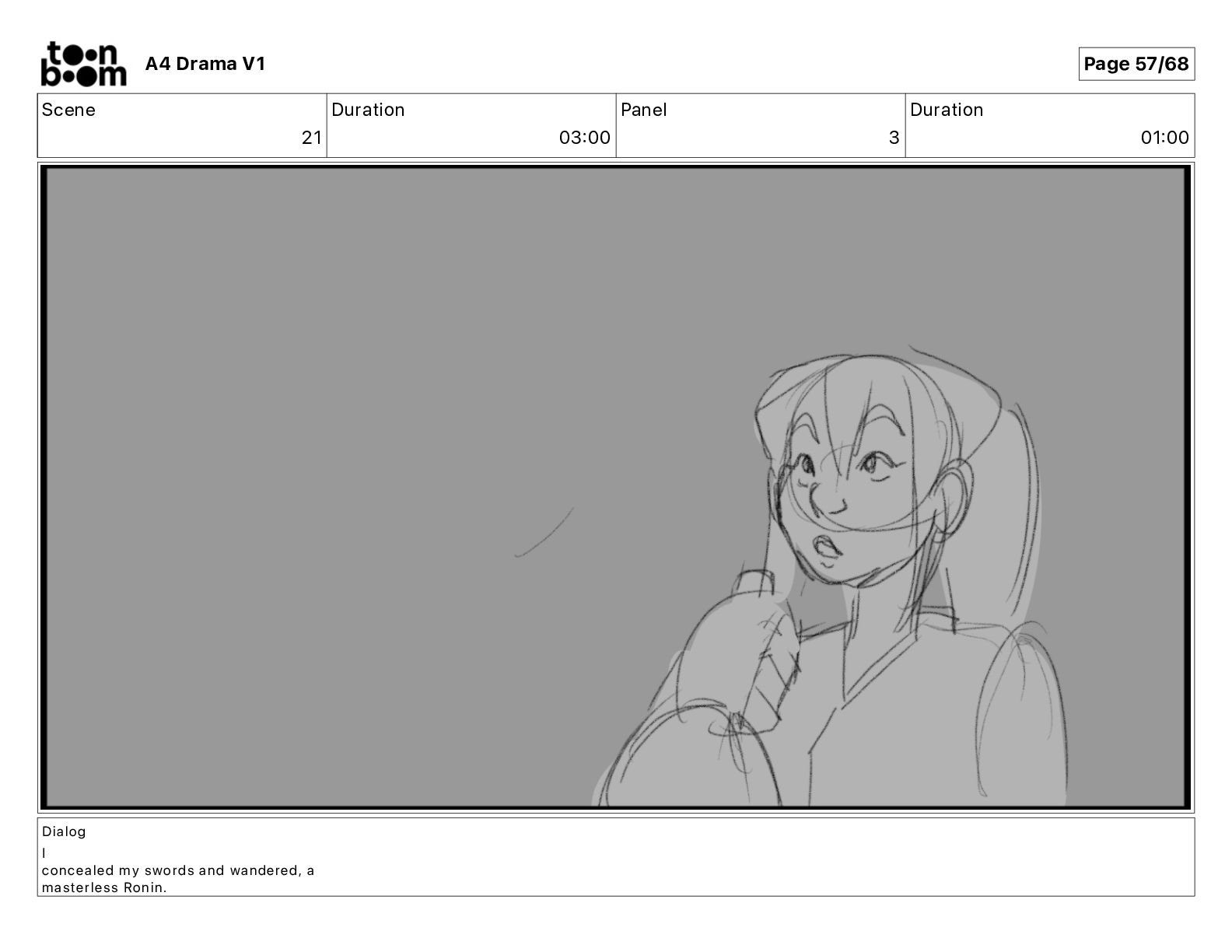 Dialog I easily disarmed him, broke his nose and shattered his collar bone. His father, a high-ranking noble demanded that I be put to death. A4 Drama V1 Page 51/68