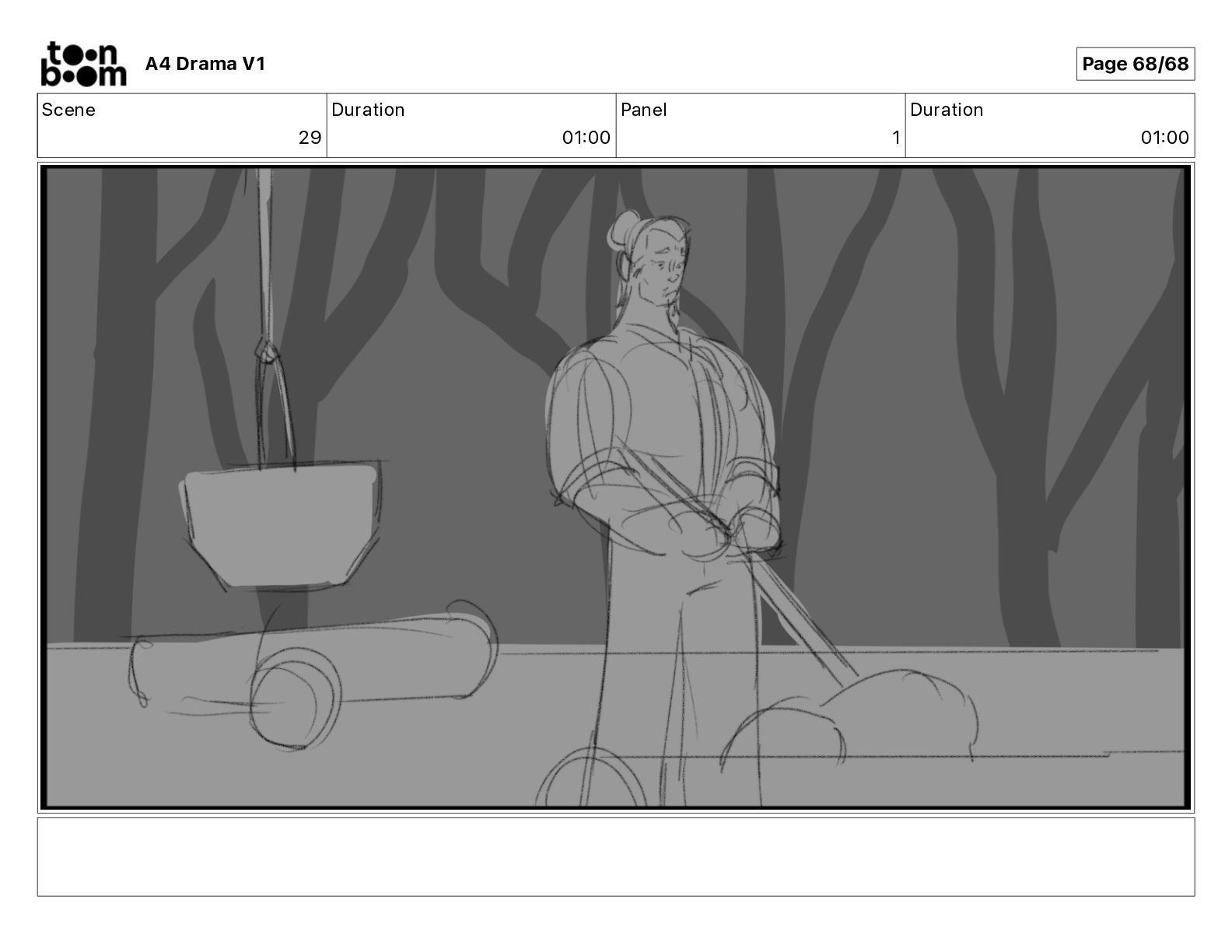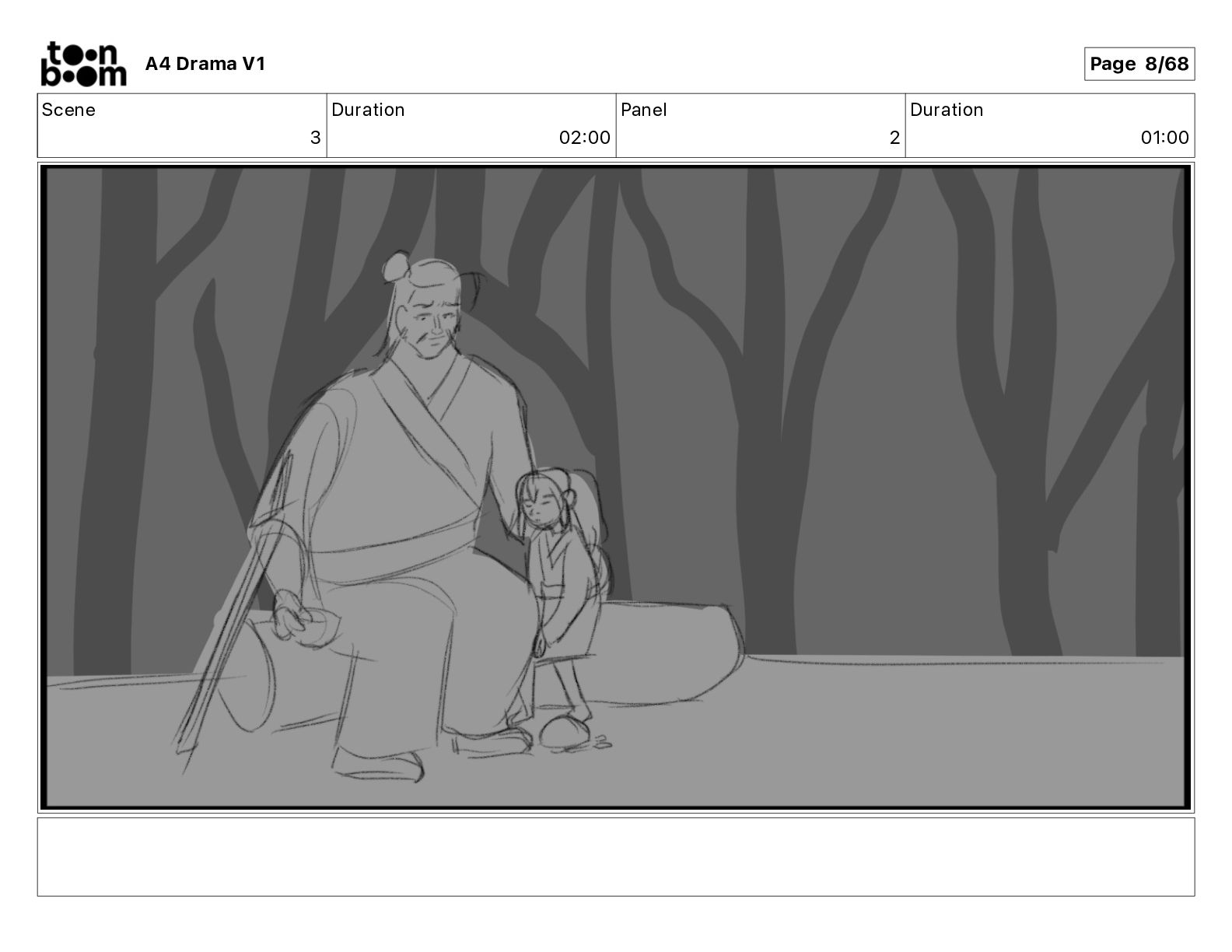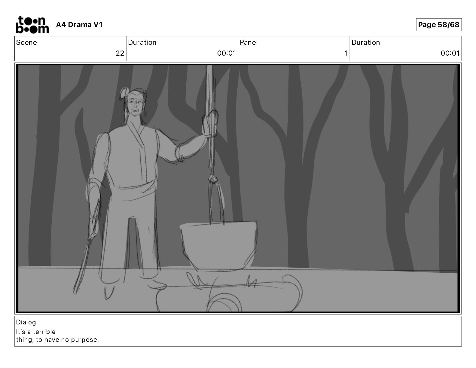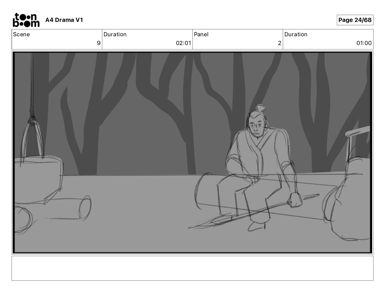 Dialog One day, a ver y r ich, ver y ar rogant young samurai in training challenged me, offer ing a bag of gold. When I beat him, he became enraged, dropped his stick, pulled his sword, and attacked. A4 Drama V1 Page 50/68