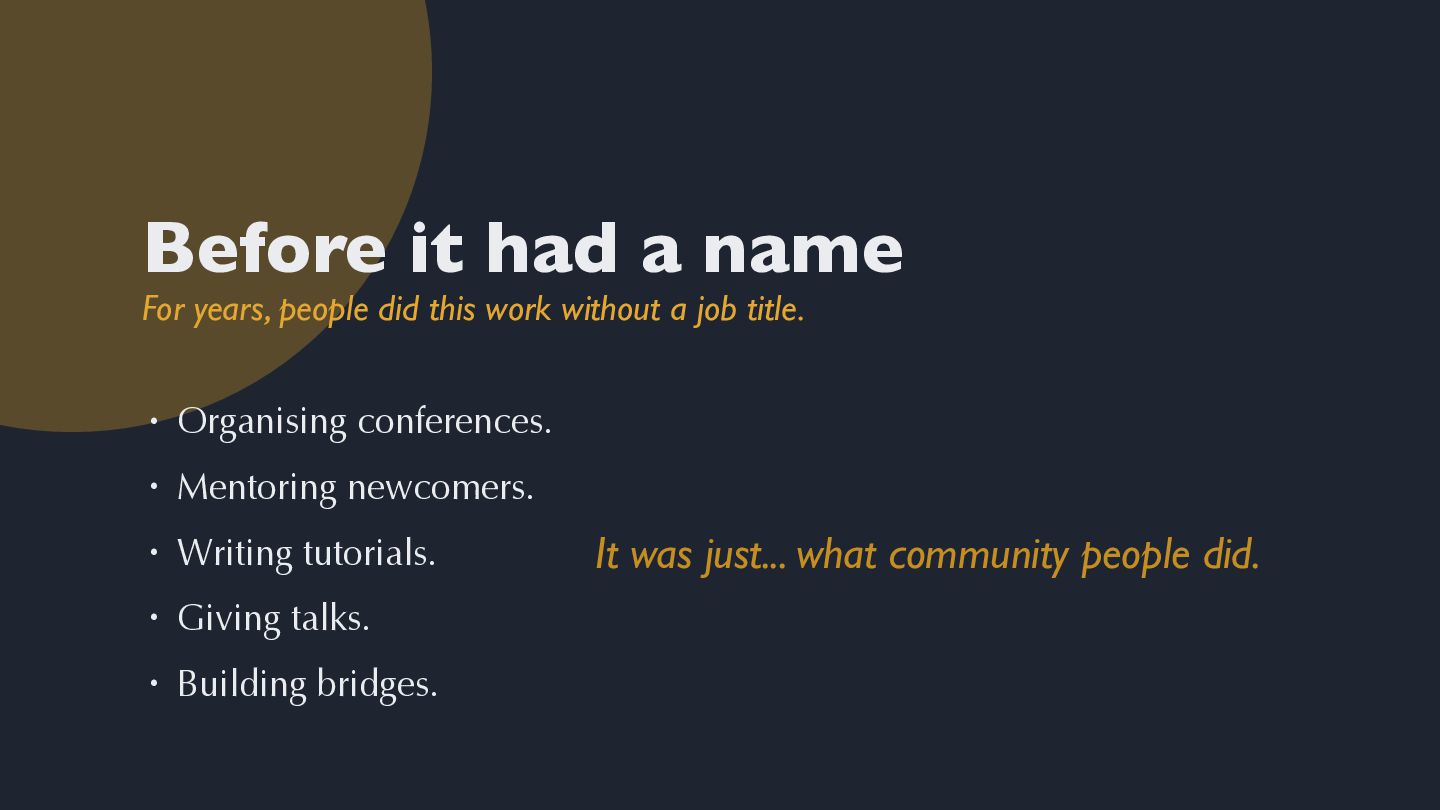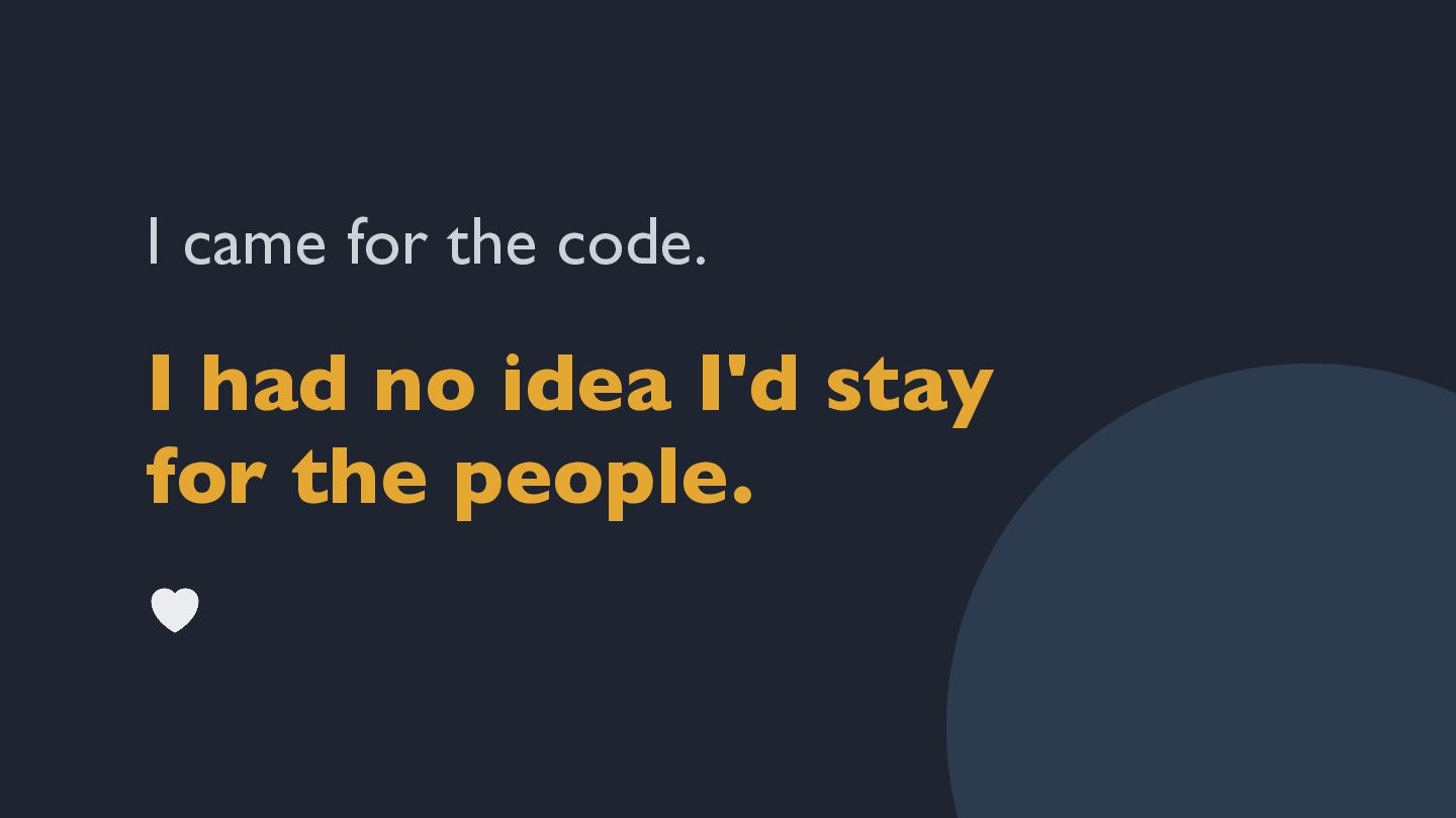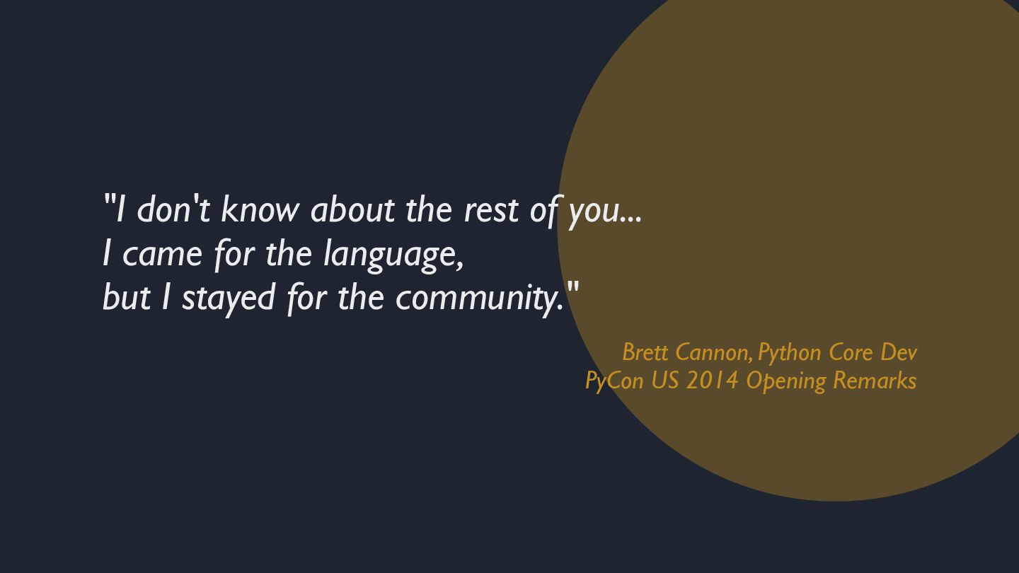 "Come for the language, stay for the community." If you've been around Python long enough, you've heard this before. I don't know when I first heard it, but I know exactly when I understood it.
