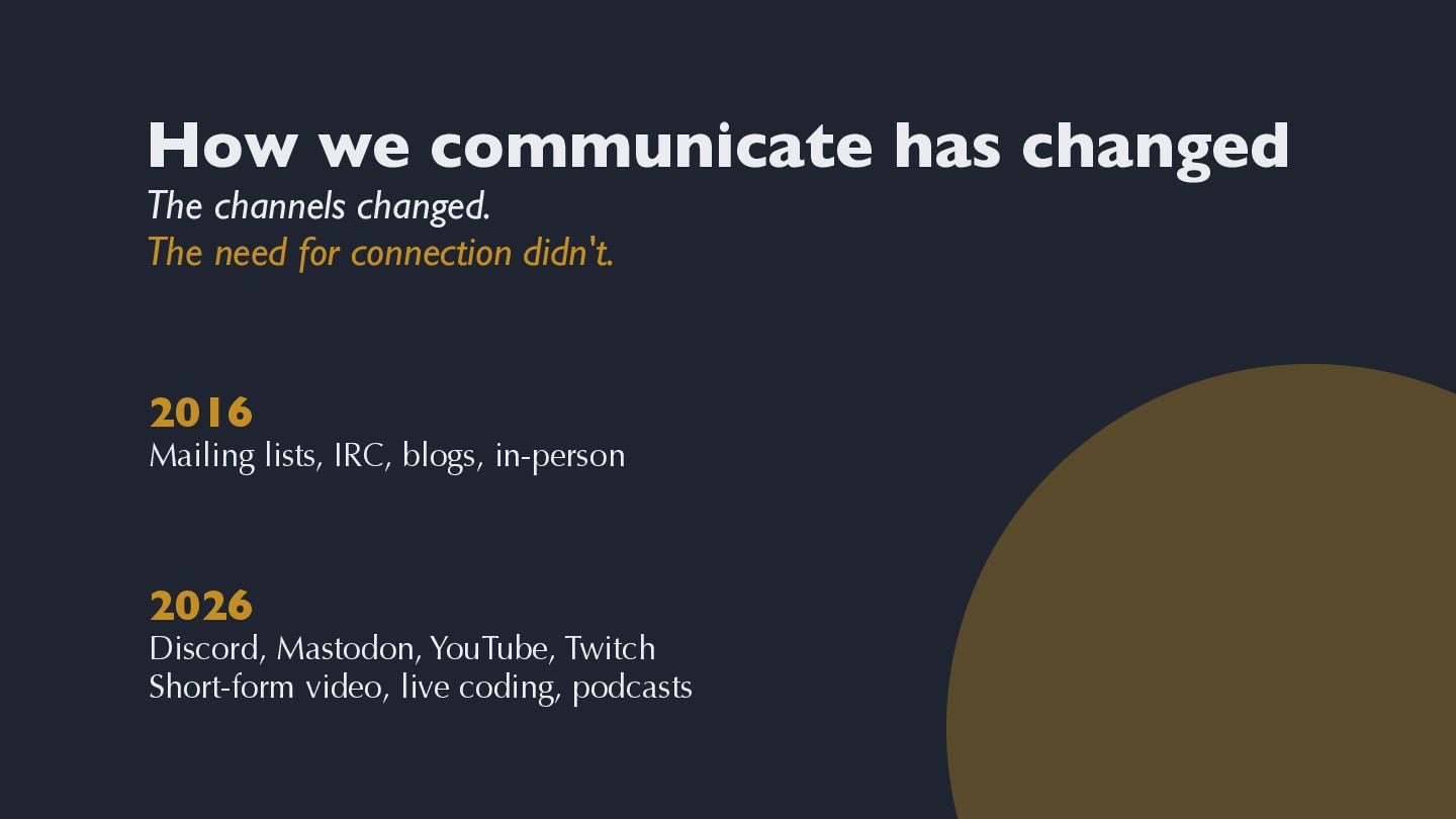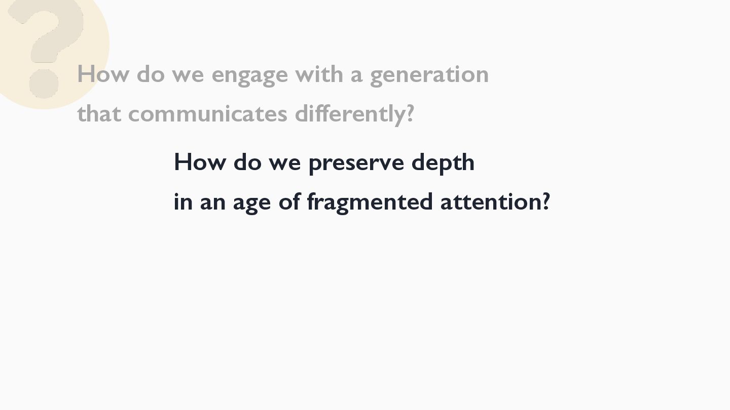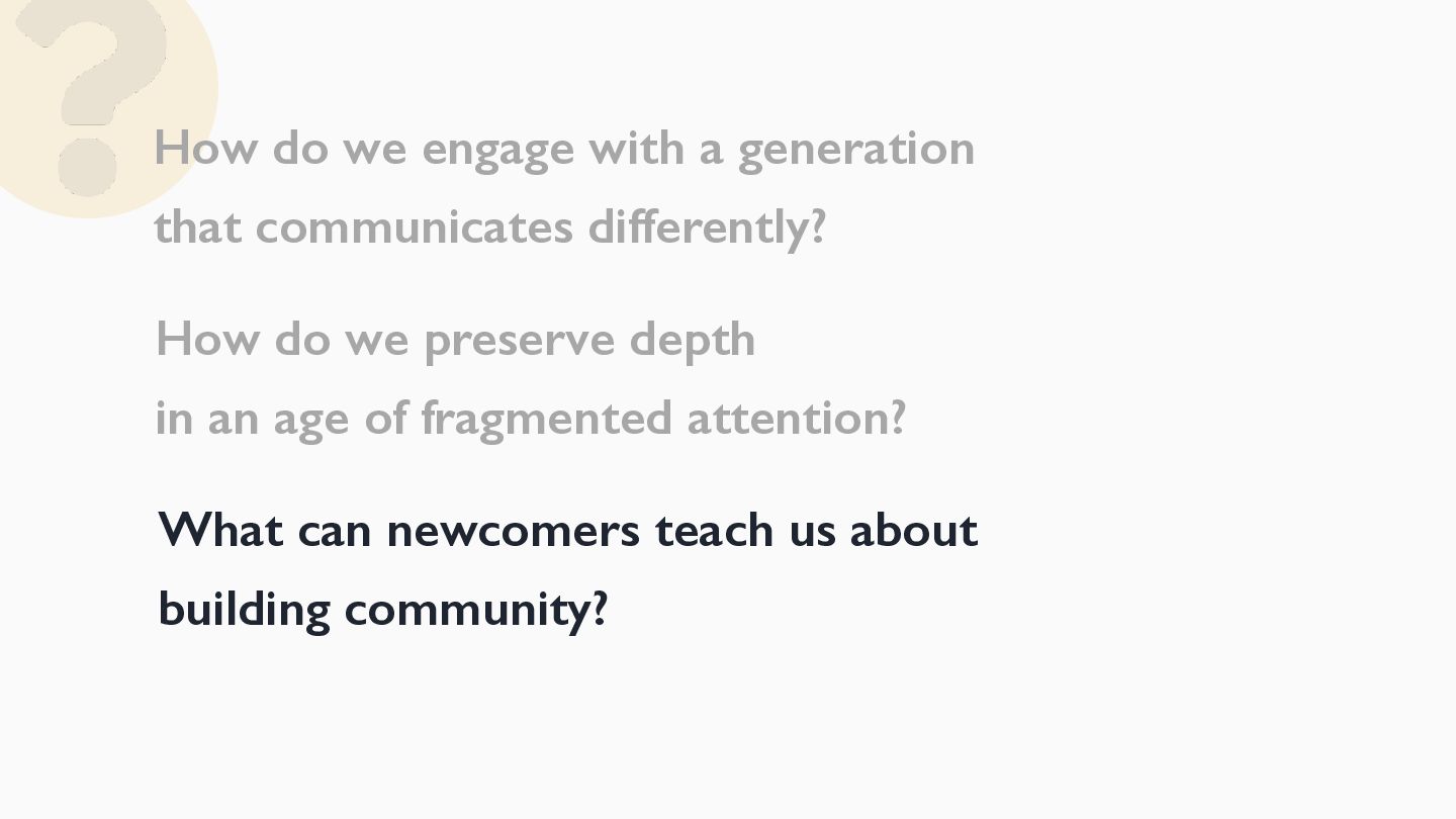 I'll end with an open question: as the ways we connect continue to evolve, how do we preserve what matters while welcoming a new generation?