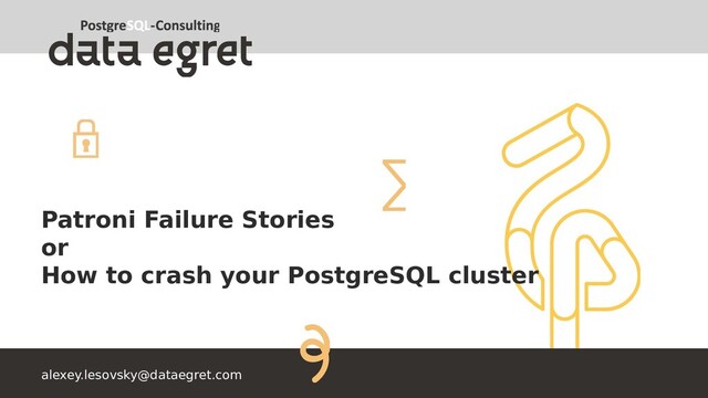 я Patroni? Определенно, да Хотите больше интересных историй? https://github.com/zalando/patroni/issues Спасибо Zalando, A» из коlexander Kukushkin, Oleksii Kliukin и всем контрибьюторам Послесловие
