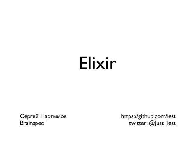Elixir Сергей Нартымов Brainspec https://github.com/lest twitter: @just_lest