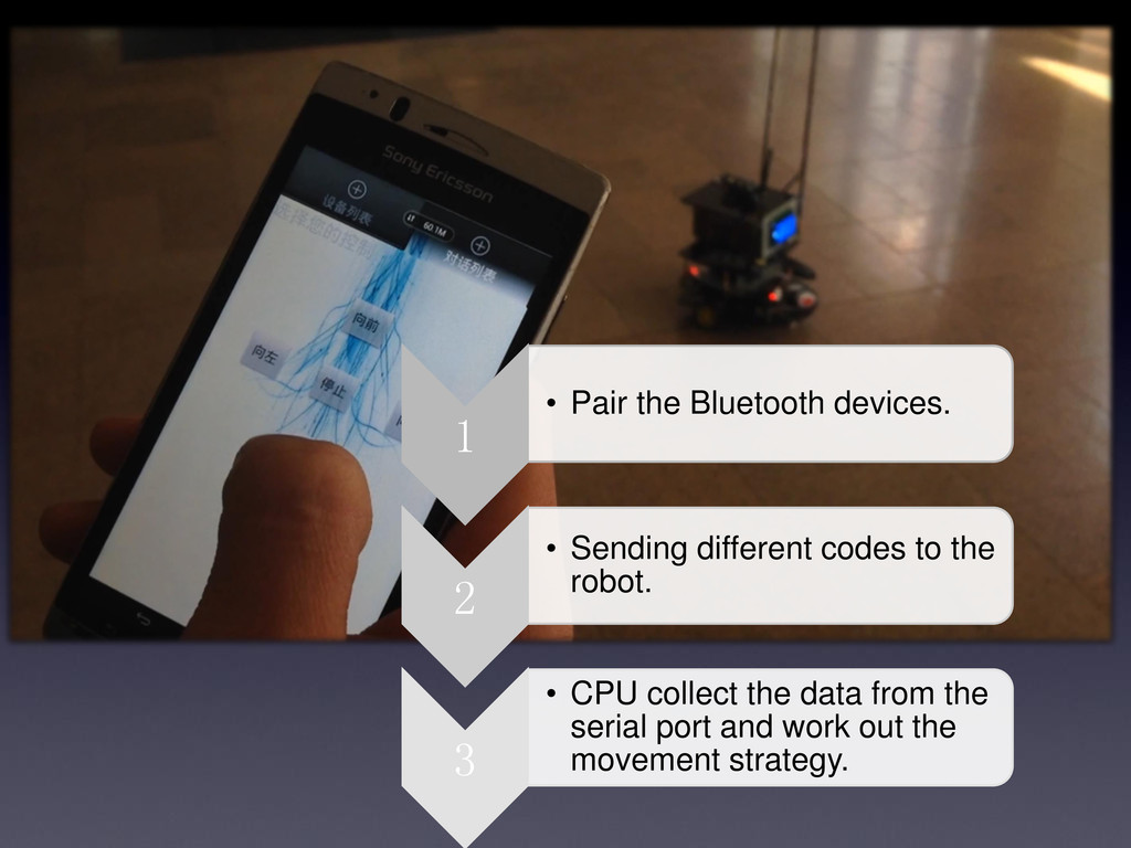 codes to the robot. 3 • CPU collect the data from the serial port and work out the movement strategy.