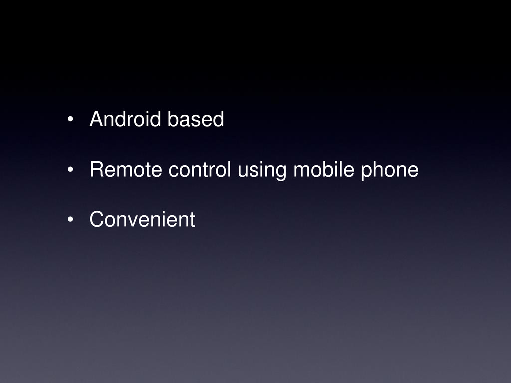 • Android based • Remote control using mobile phone •