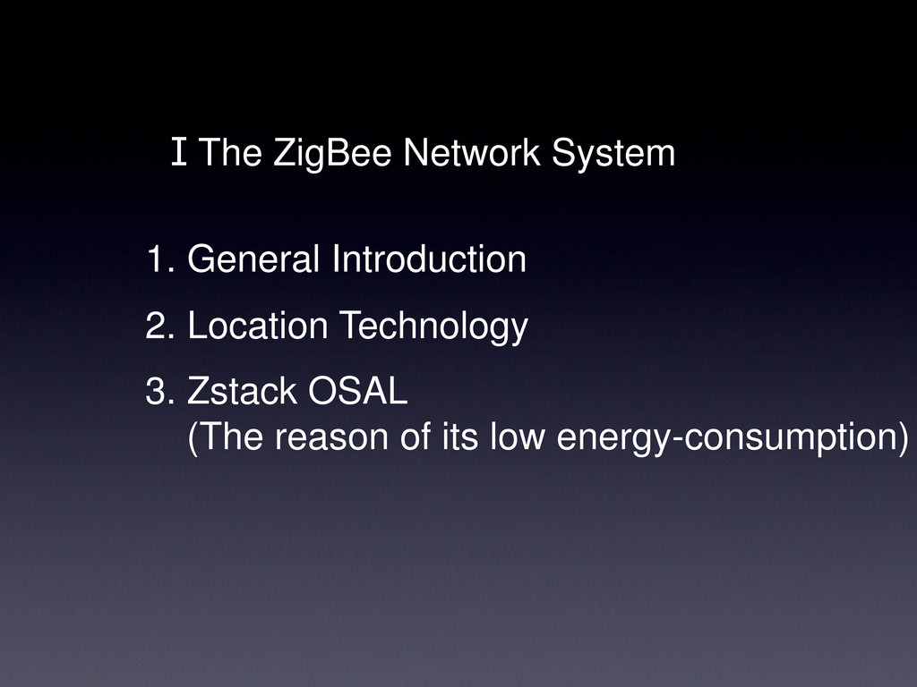 ⅠThe ZigBee Network System 1. General Introduction 2. Location Technology