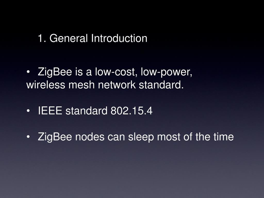 1. General Introduction • ZigBee is a low-cost, low-power, wireless