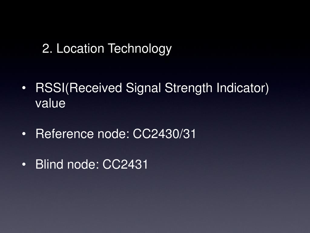 2. Location Technology • RSSI(Received Signal Strength Indicator) value •
