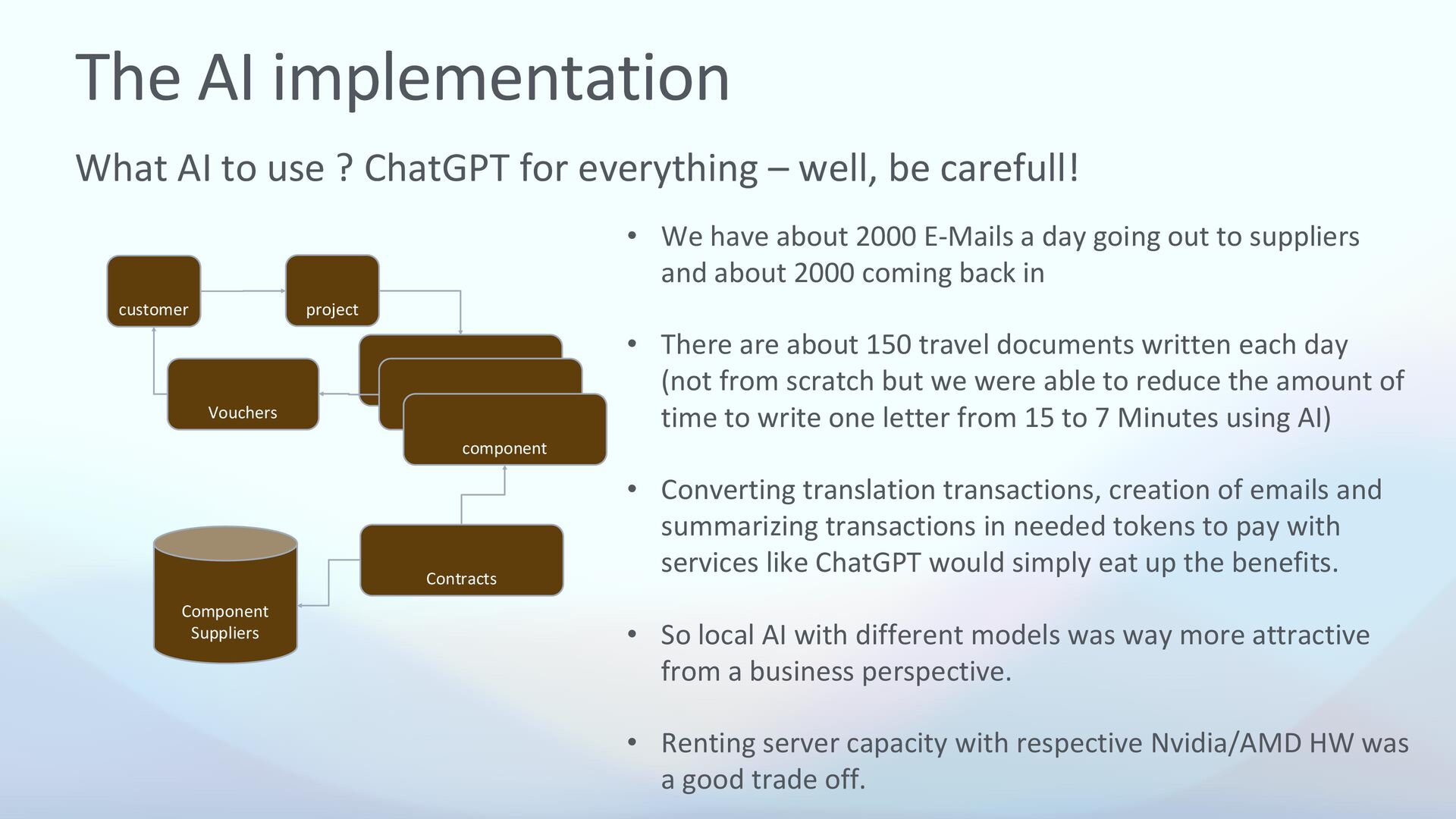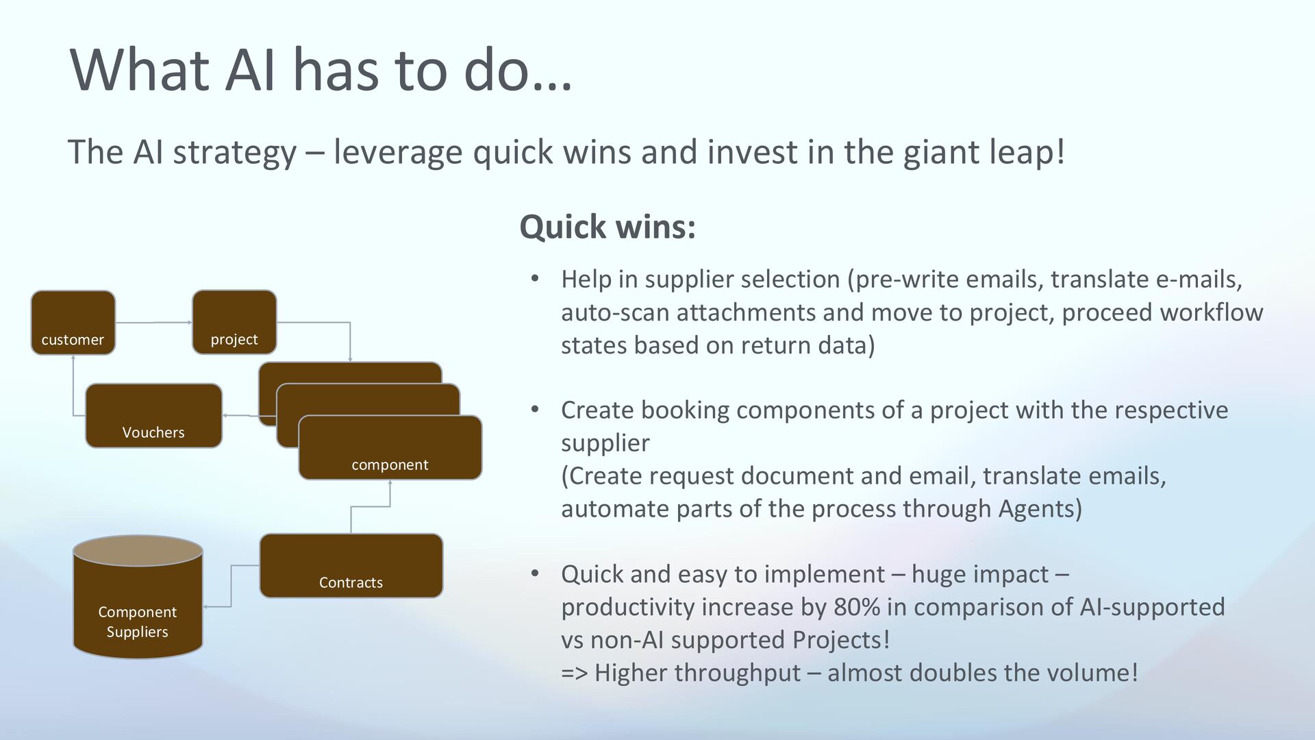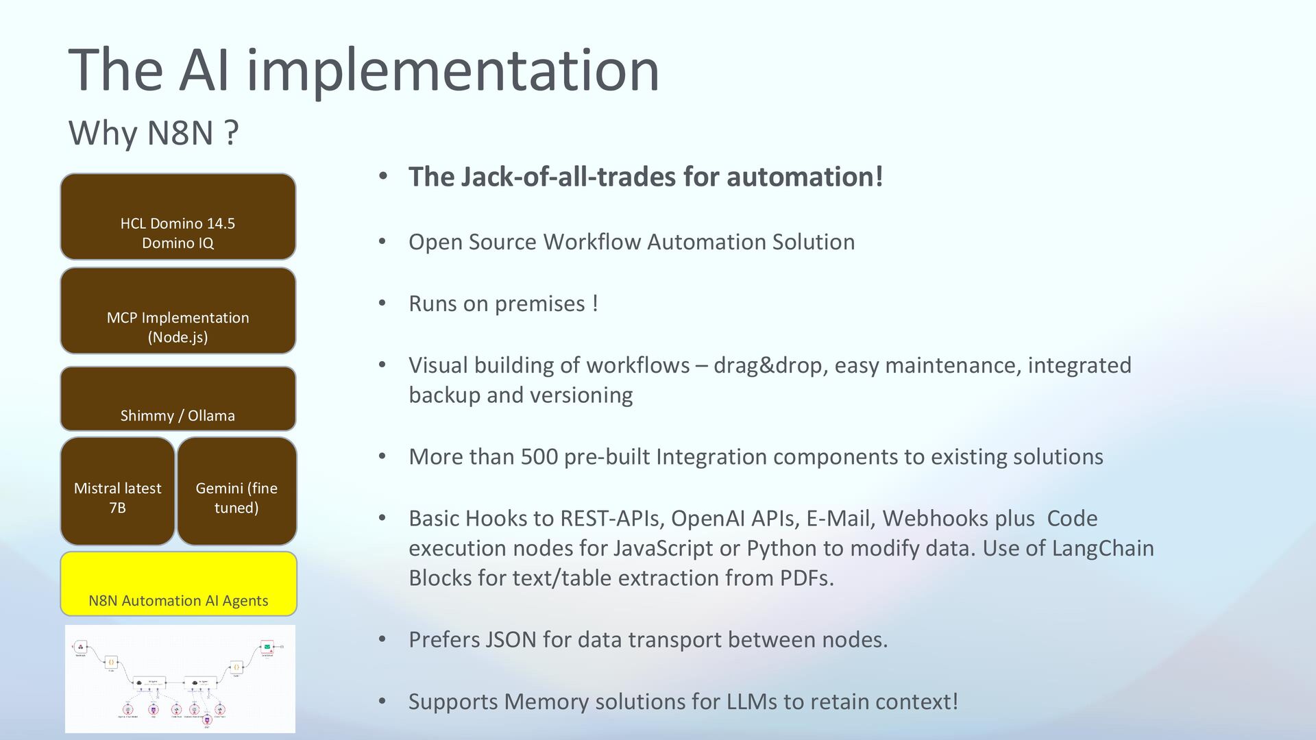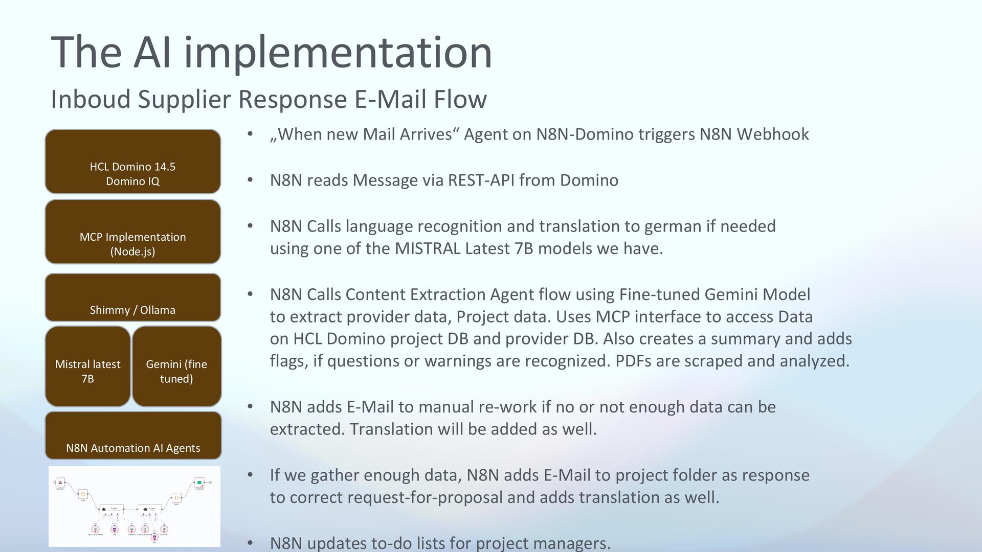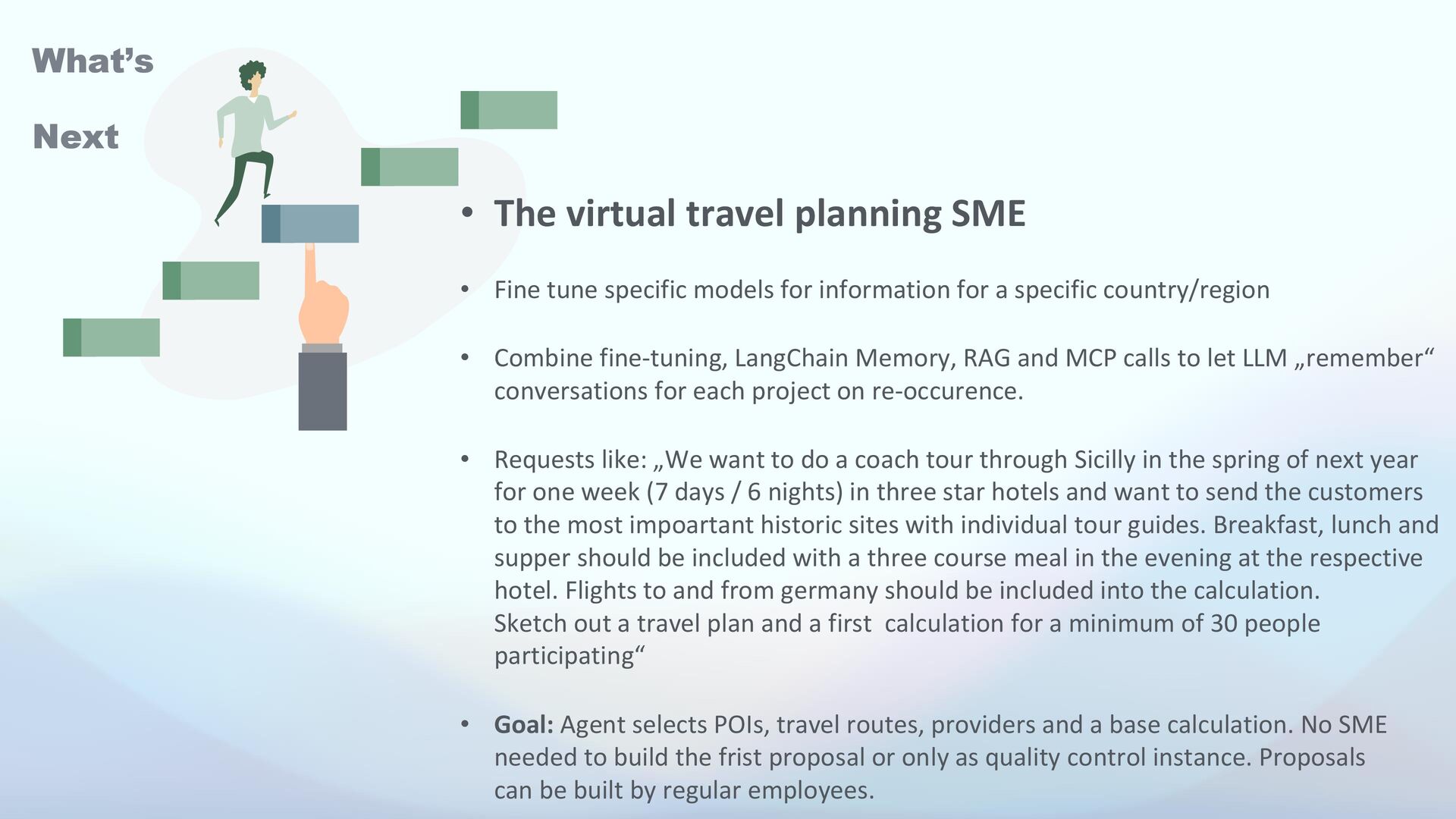 In the spring of this year (2025) we started with the first Beta Implementations of the new Domino IQ based features and functions at a company for packaged coach tours and river cruises in Germany. The company is one of the market leaders in this sector reselling packaged travel arrangements in the whole DACH Region. During the COVID season, the company went through rough times, almost going bankrupt with revenues coming to a total halt during the pandemic. During that time, layoffs had been necessary and a large amount of highly qualified speciallists lost their jobs and went into different professions. Fast forward to today - the market segement is booming and the company is grwoing rapdidly, so fast, that they are not able to find enough skilled personell to meet the growth. As a long term HCL Notes/Domino user, we sat down and came up with an idea, how Domino IQ could come to the rescue - let complex marketing and controlling tasks be automated using LLMs, RAG and MCP servers, allowing the customer to do a lot more with less - and meet their goals to regrow the business in a lot more efficient way than before. In this presentation, I will talk about the use cases and the business impact that using AI and Domino IQ had. Also, I will. give an overview of the technical implementation Join me on a customer journey through making productive use of AI and Domino IQ!