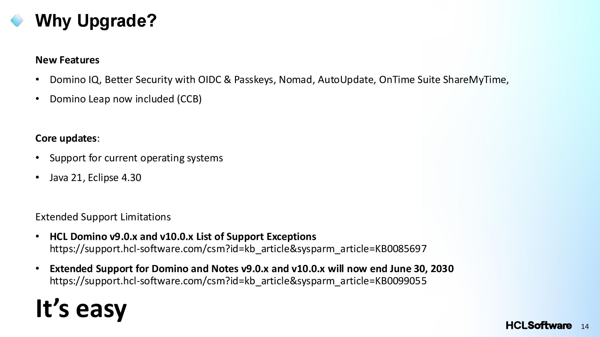 Level-Up! to Domino 14.5. This session highlights 10 good reasons to upgrade with enhancements in the Domino Product family. We’ll explore new features designed to improve performance, streamline workflows, and deliver greater value to users. Gain insight into the most impactful changes, including upgraded tools, user experience improvements, and expanded integrations.