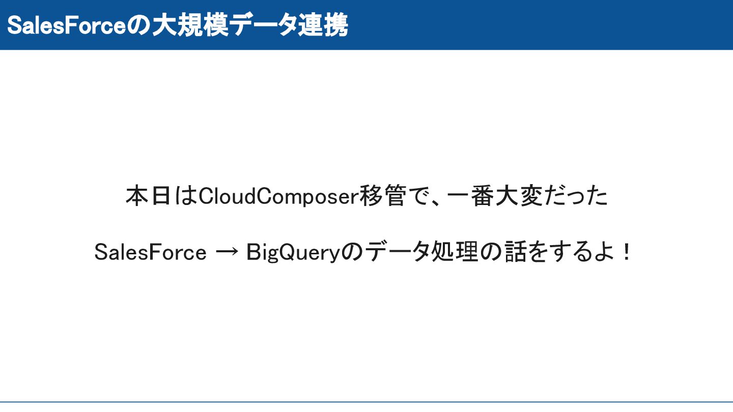 SalesForceの大規模データ連携 本日はCloudComposer移管で、一番大変だった SalesForce → BigQueryのデータ処理の話をするよ!
