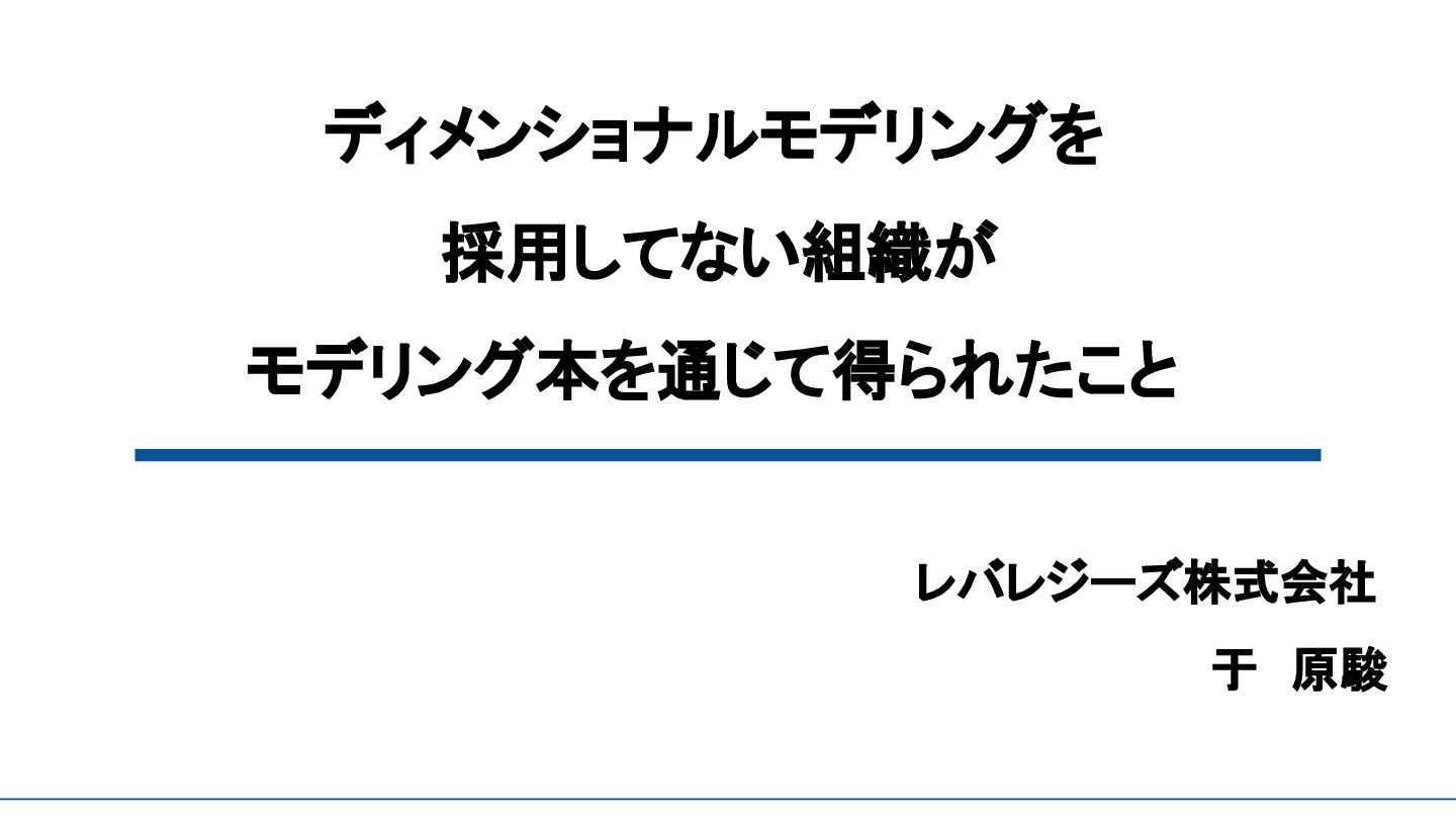 ディメンショナルモデリングを 採用してない組織が モデリング本を通じて得られたこと レバレジーズ株式会社 于 原駿